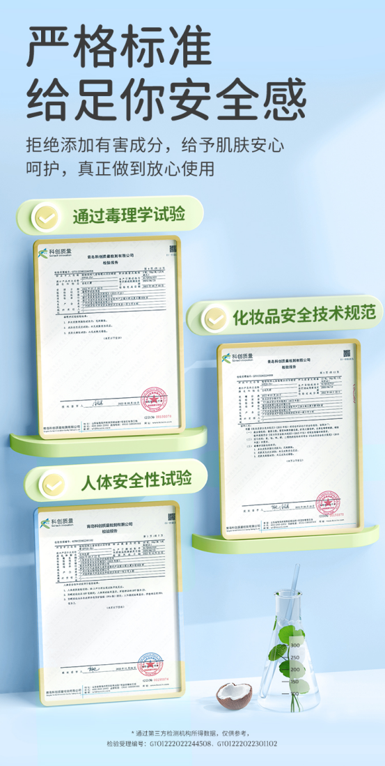△风险成分检测 通过毒理学试验,化妆品安全技术规范,人体安全性试验等检测, 成分安全无刺激更安心