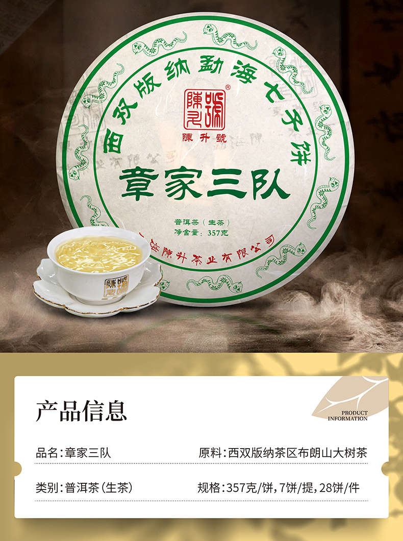 【名山头回馈款】2025陈升号普洱茶章家三队357g布朗山大树生茶叶