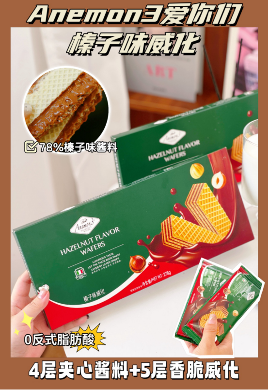 🔥【Anemon3爱你们 榛子味威化】一口咔嚓!榛香暴击❗能分着炫的快乐🤣【Anemon3爱你们 榛子味威化】甜而不腻,酥脆可口~浓郁榛子,唇齿留香😋