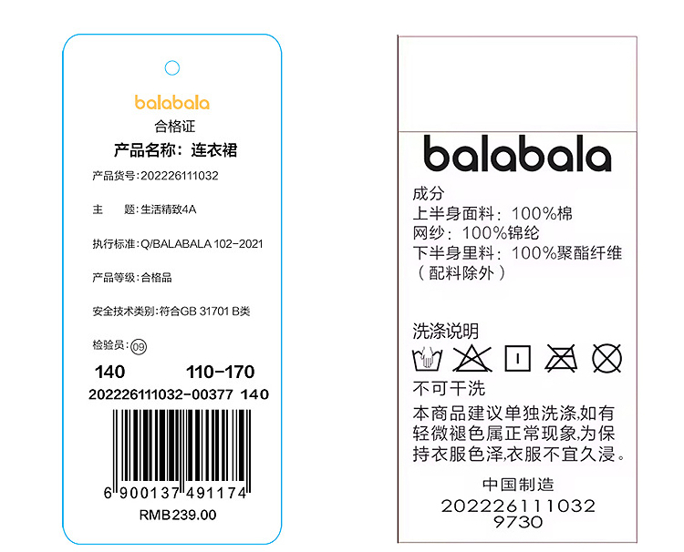 【商场同款】巴拉巴拉童装女童裙子儿童连衣裙2026新款夏针织纱裙
