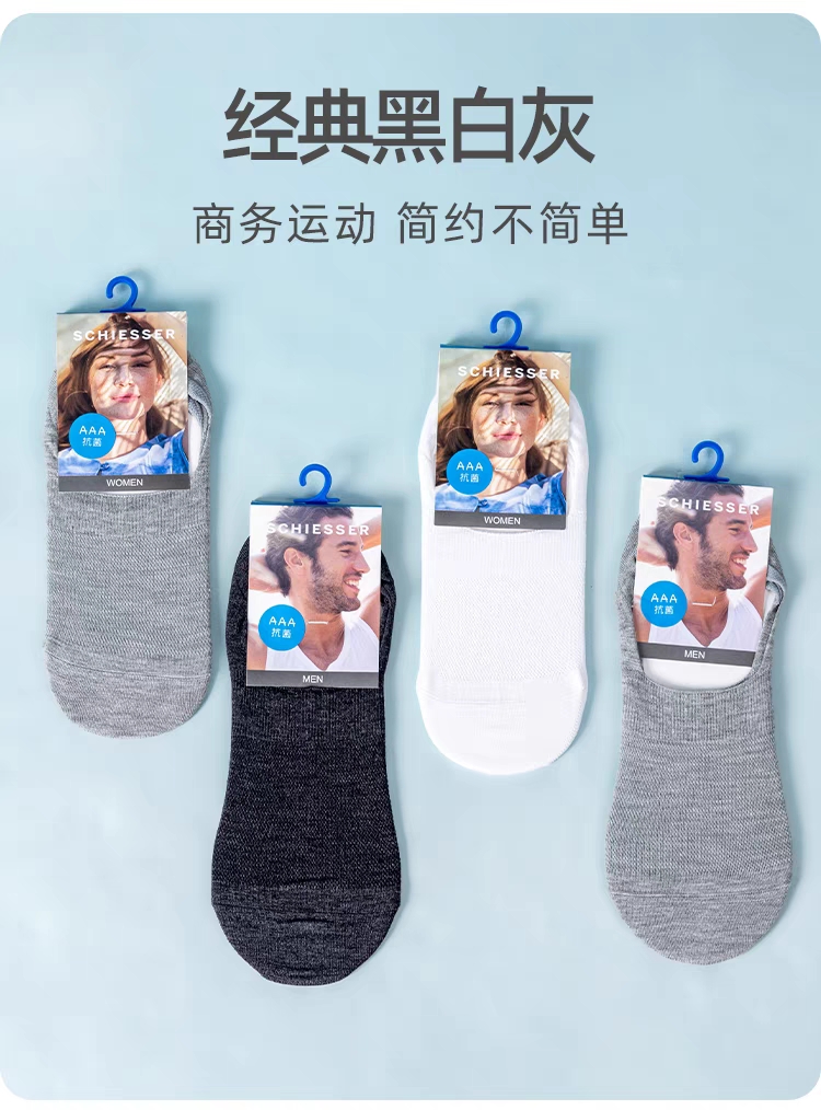 【隐形船袜】SCHIESSER舒雅船袜女夏季冰丝隐形防滑透气情侣浅口短袜黑白色防掉根30/21195K