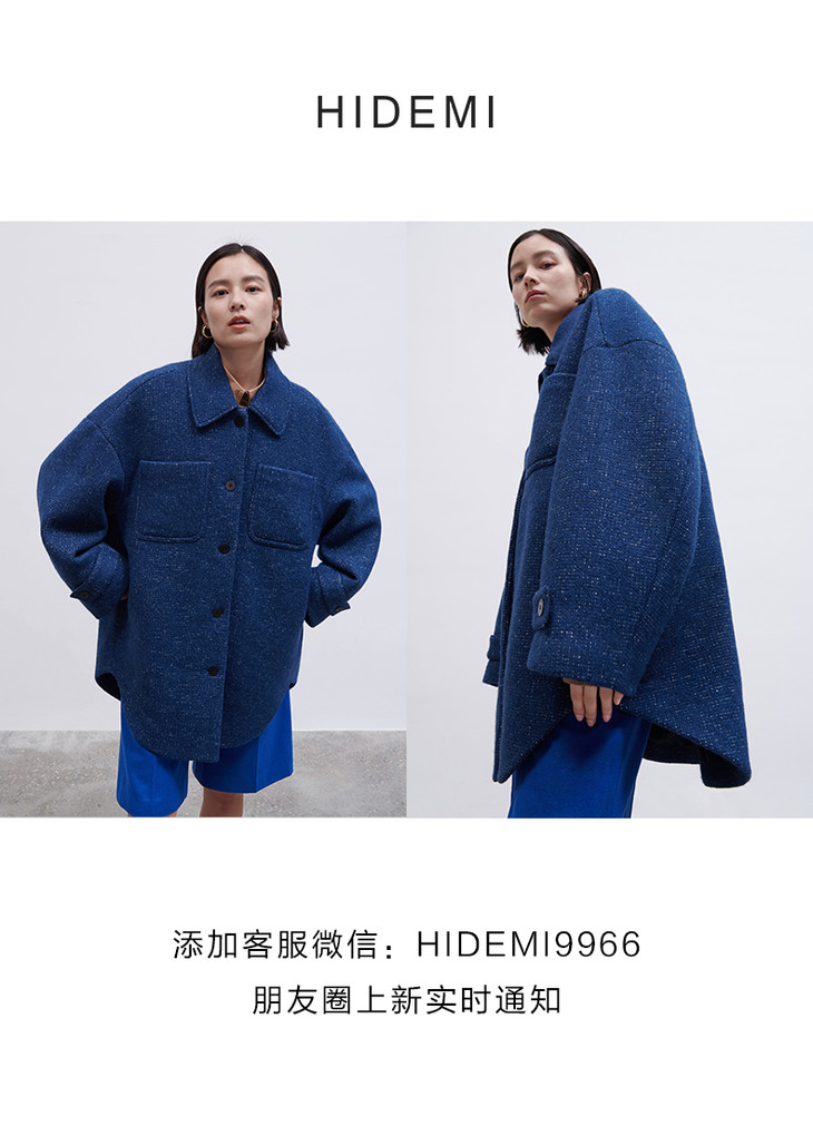 HIDEMI日本加厚粗花呢口袋设计感衬衫式羊毛大衣