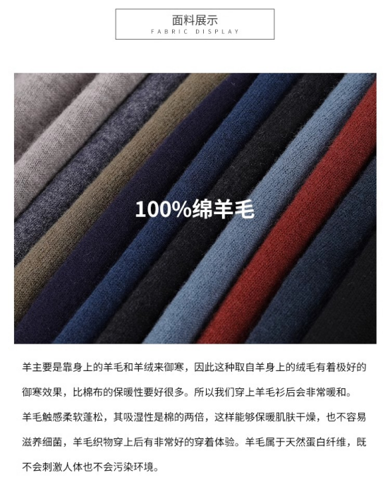 打底必备!面料采用100%绵羊毛面料 绵羊毛因其纤维细长细软,手感柔软舒适 穿上后能给人带来舒适的感觉 其抗皱性也是值得来出来说一说的 因其纤维不易起皱特征 不用担心穿着后面子会很乱 影响整体的穿着效果