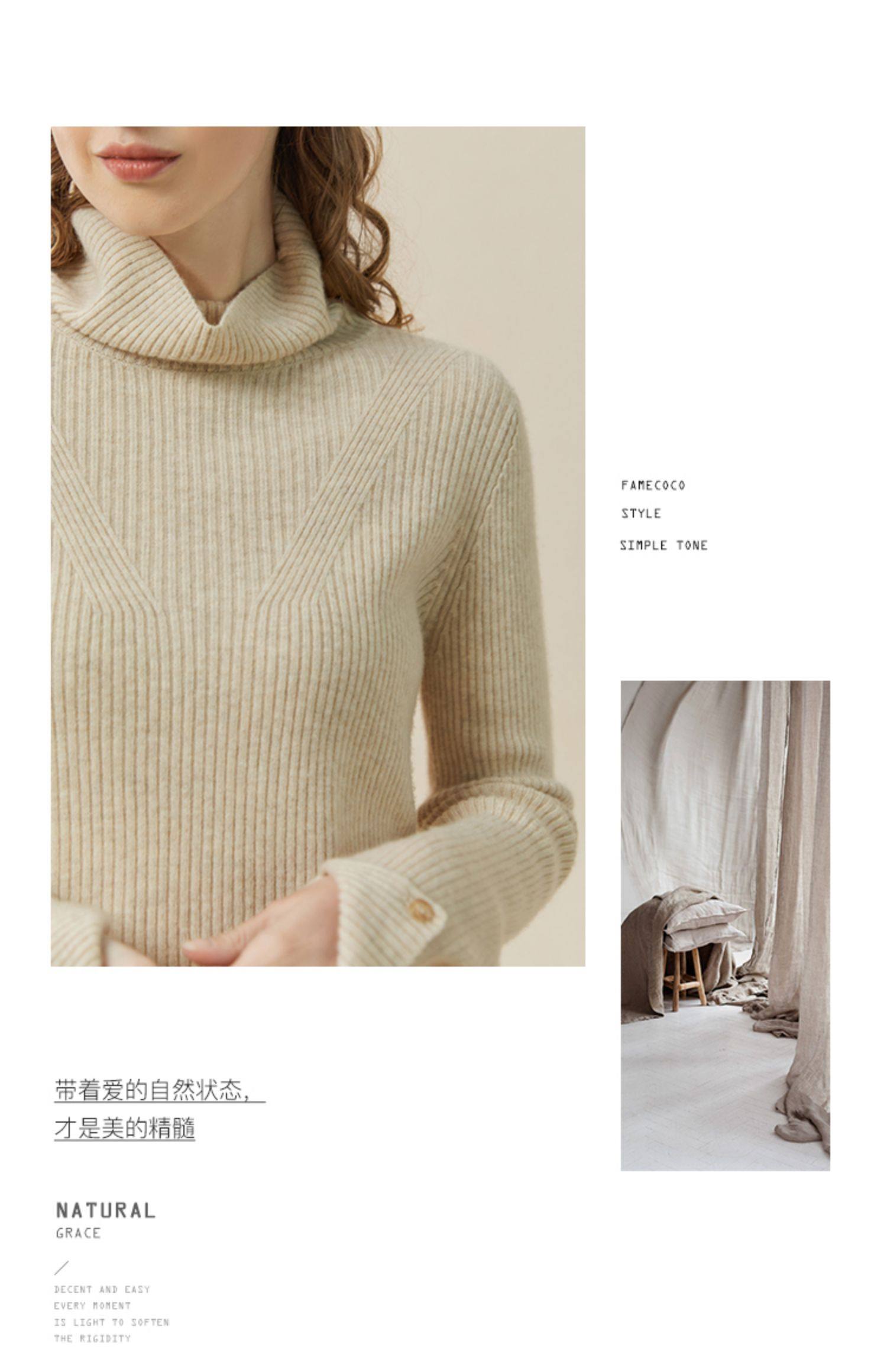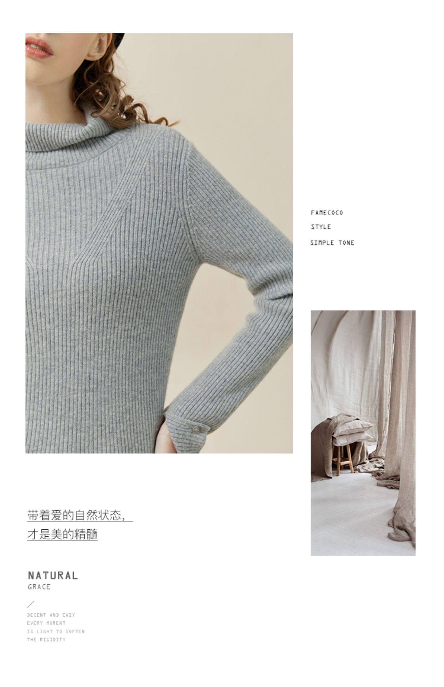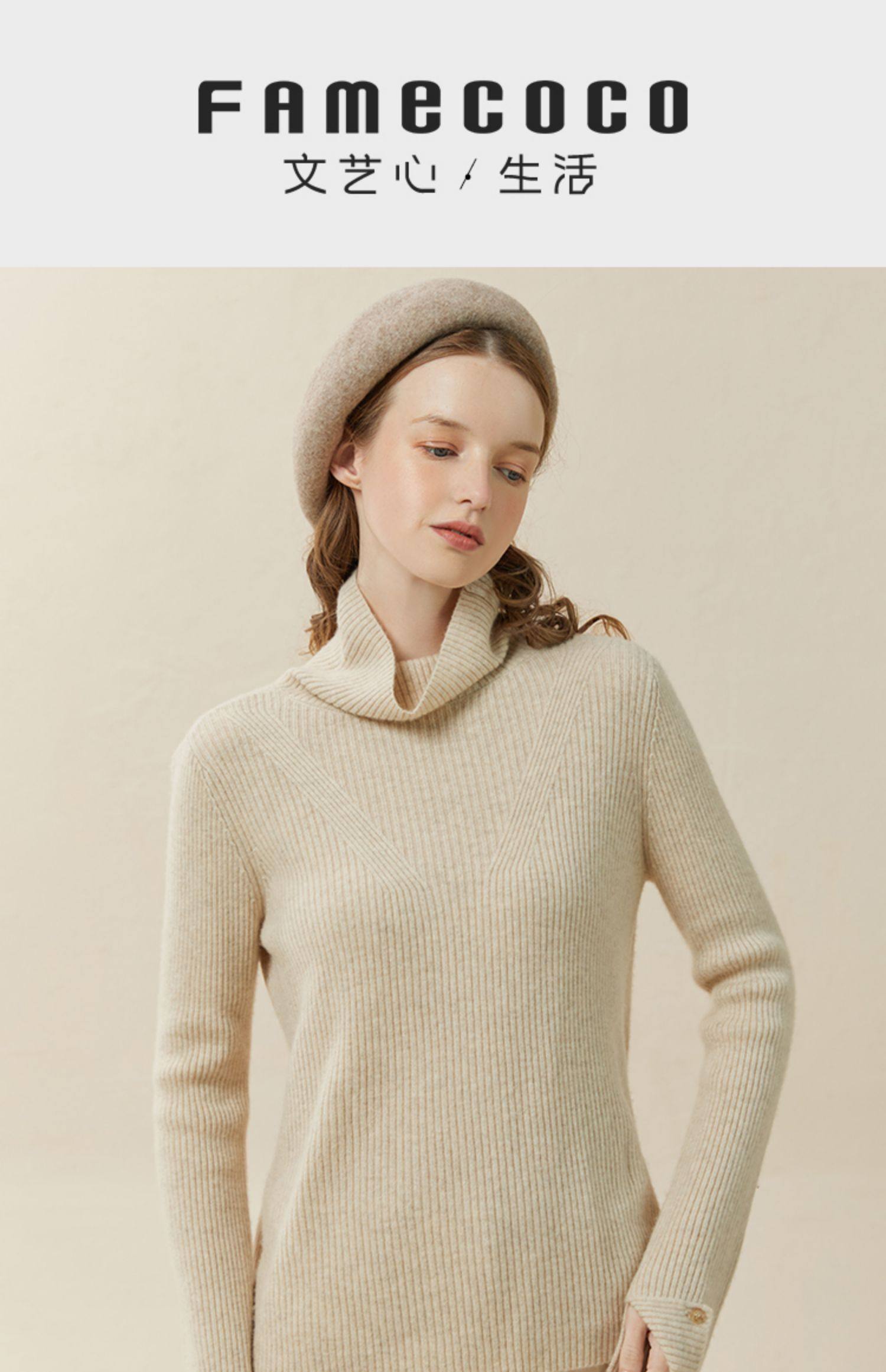 Famecoco范可儿高领羊毛毛衣秋冬内搭小众设计感纯色打底毛衫F228DC020