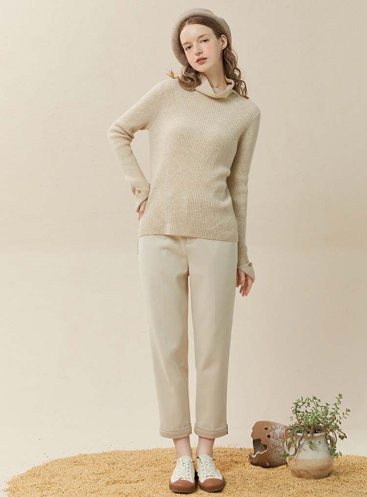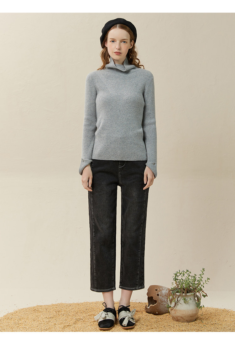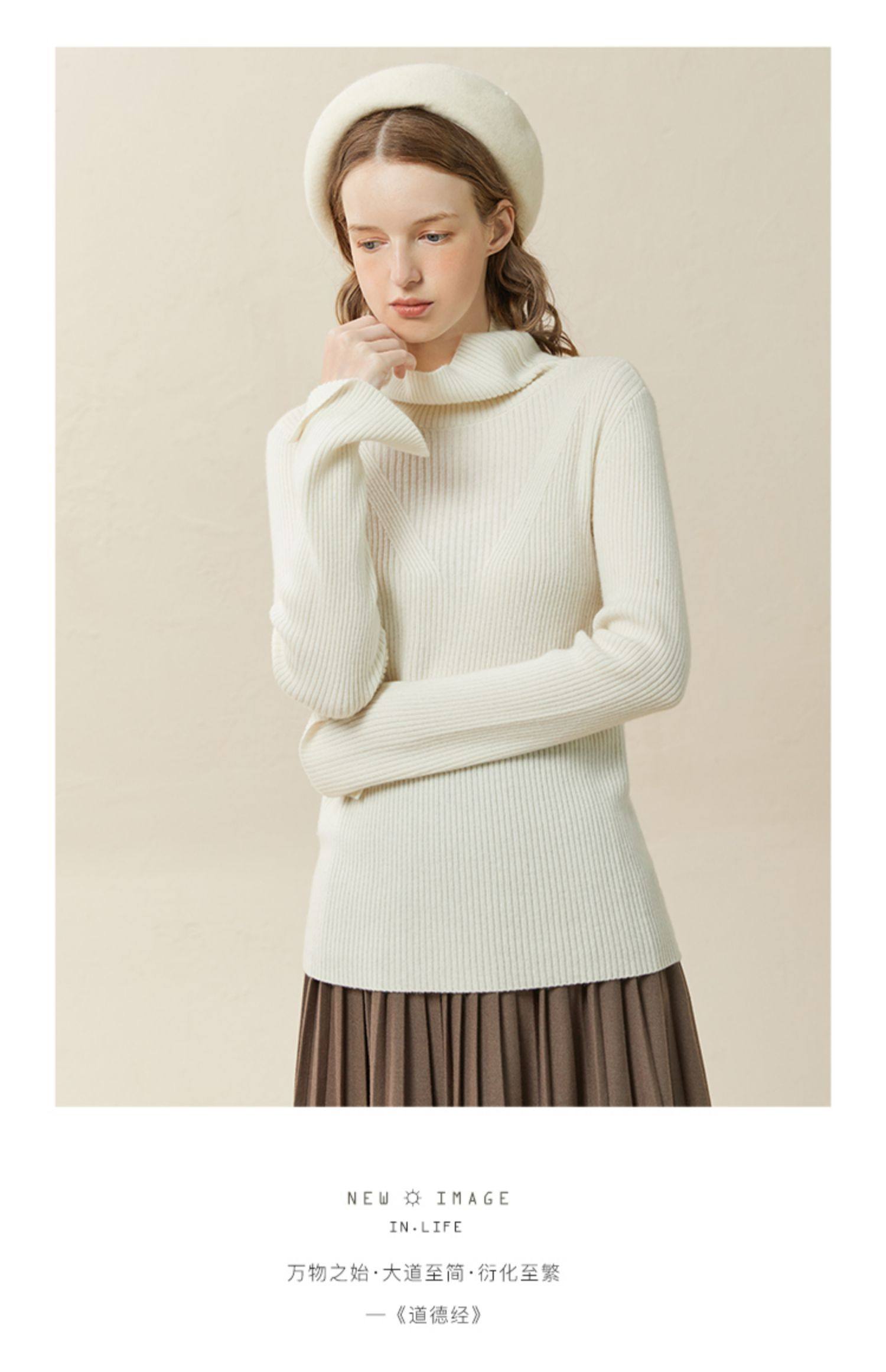Famecoco范可儿高领羊毛毛衣秋冬内搭小众设计感纯色打底毛衫F228DC020