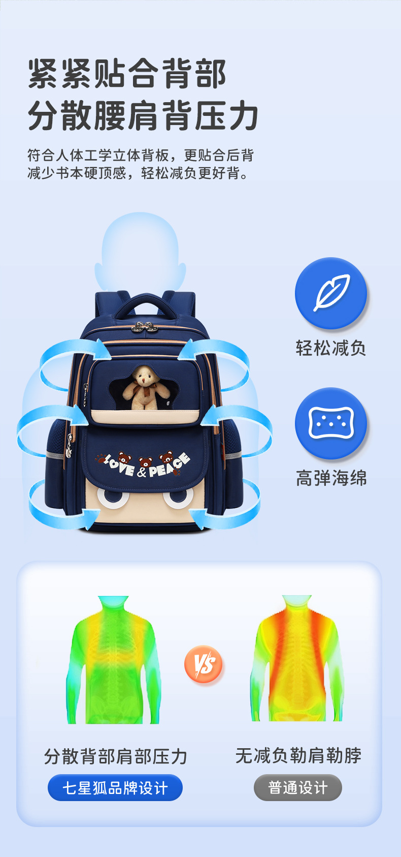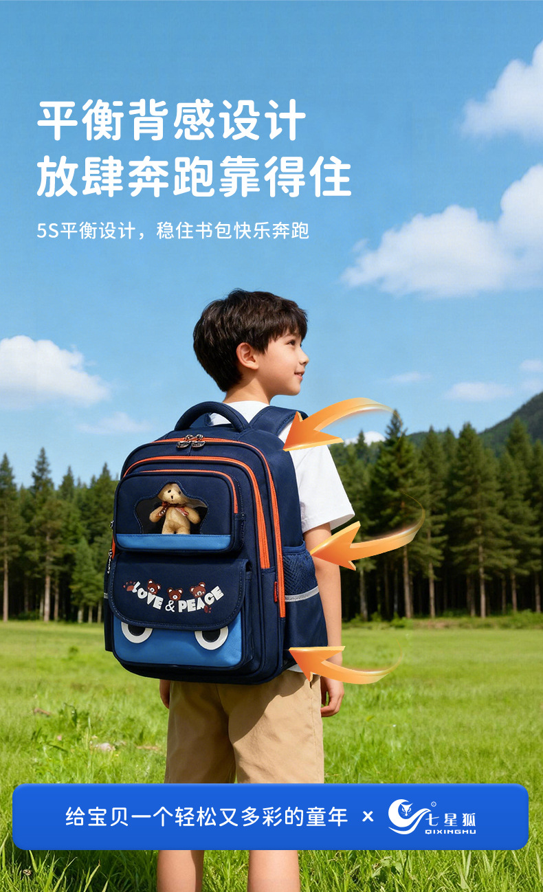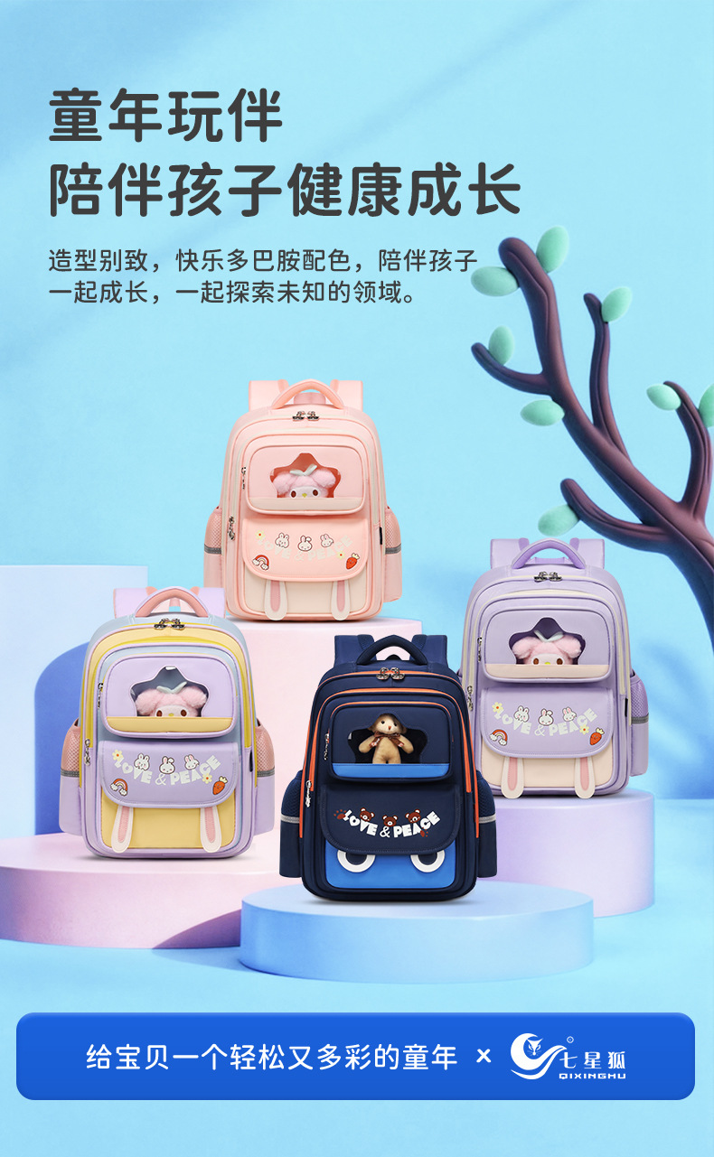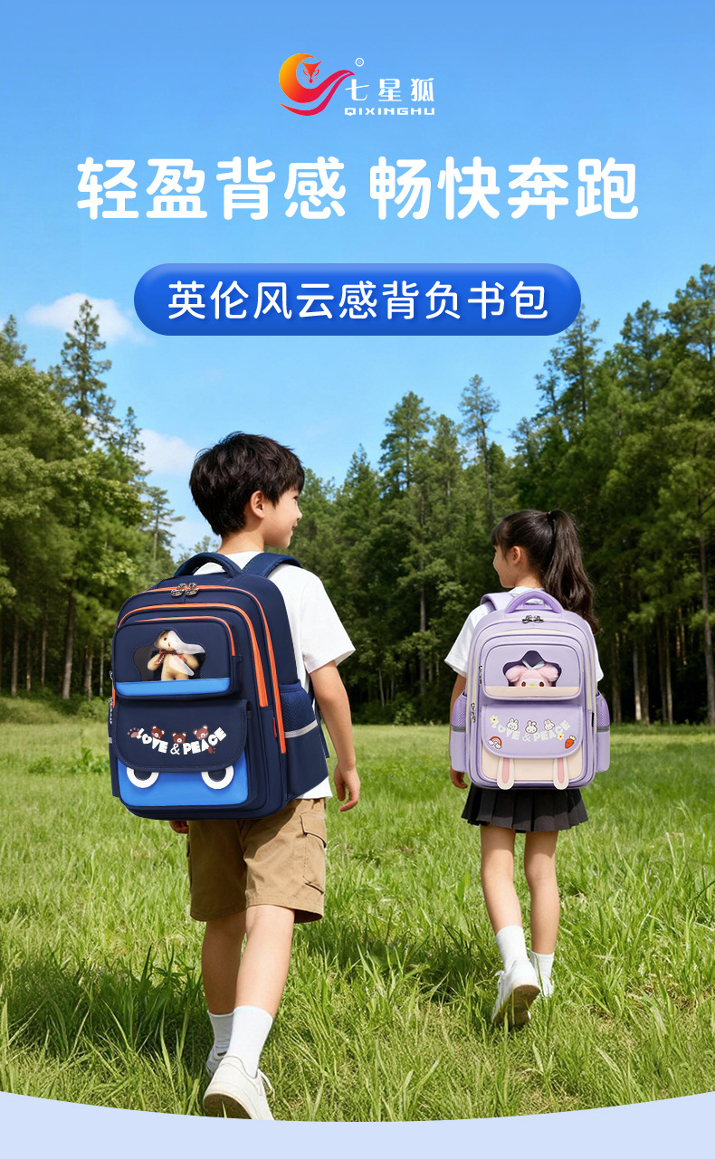 七星狐卡通小学生书包2-6年级轻便双肩包