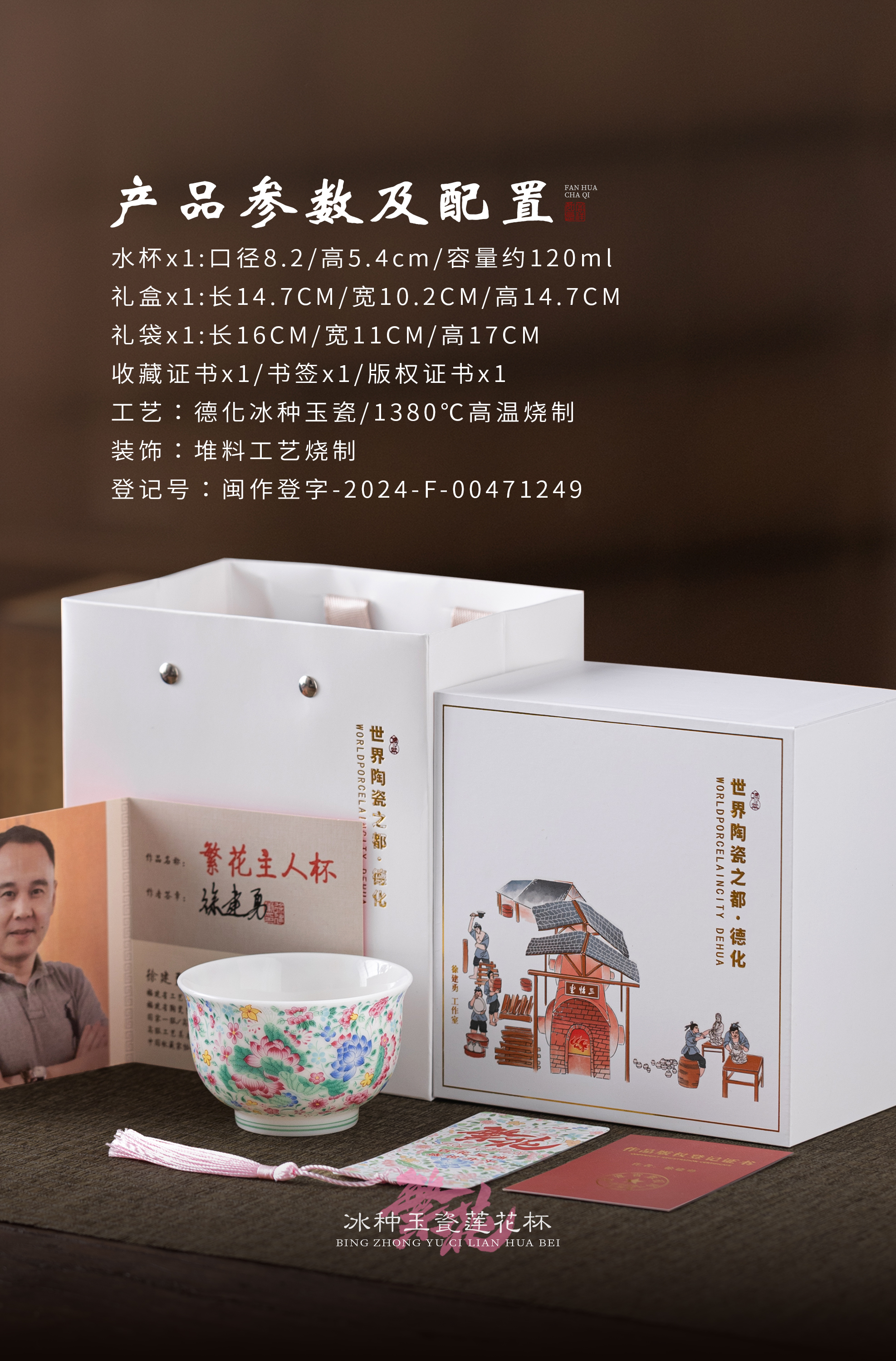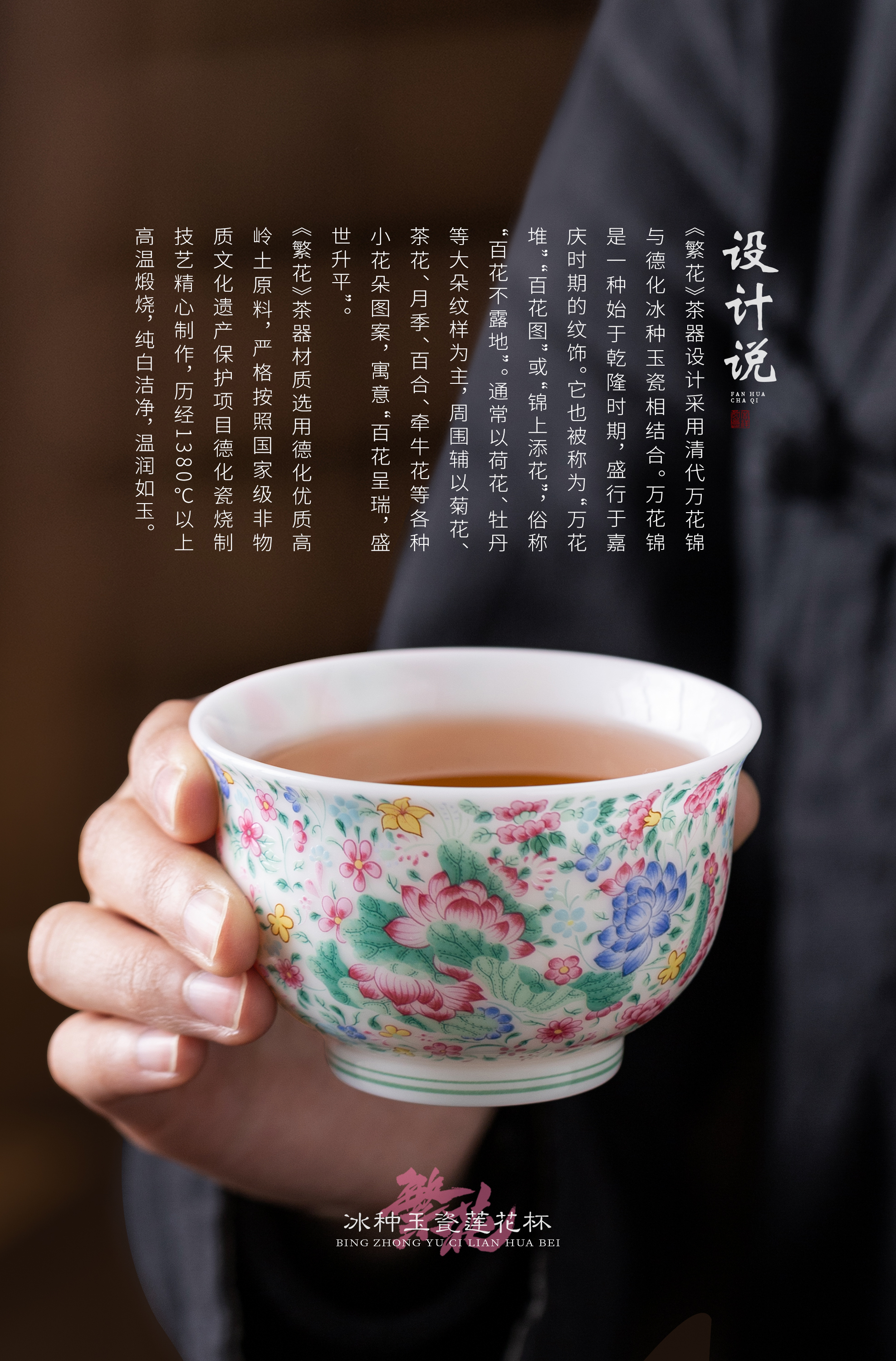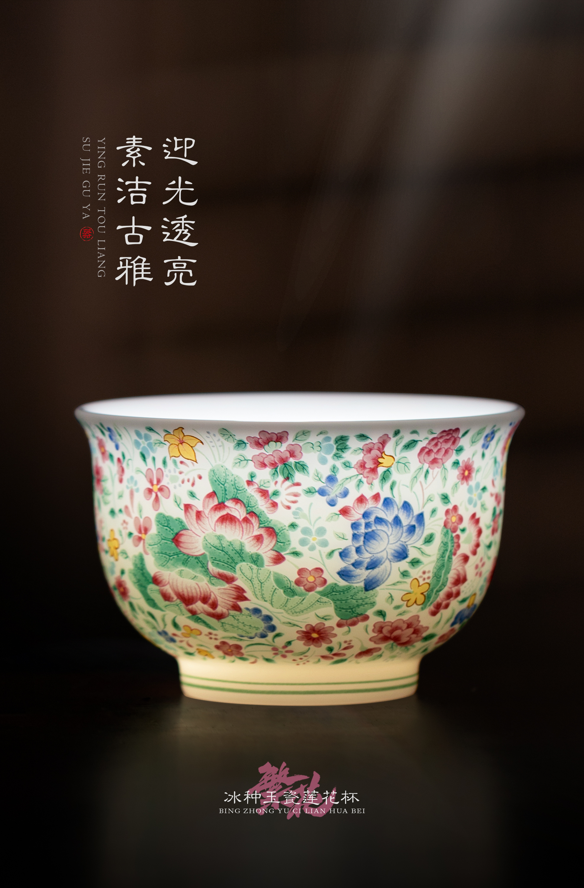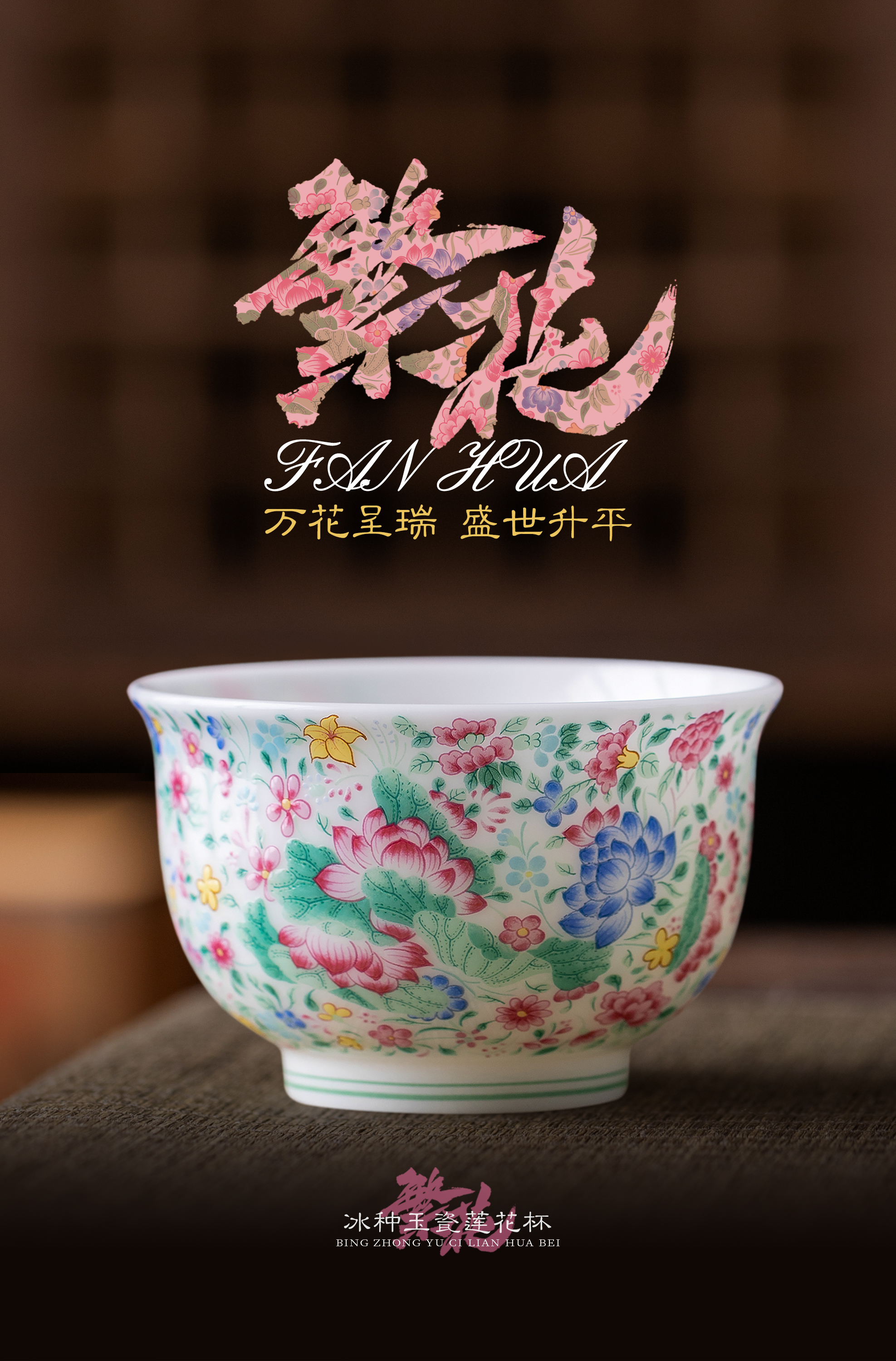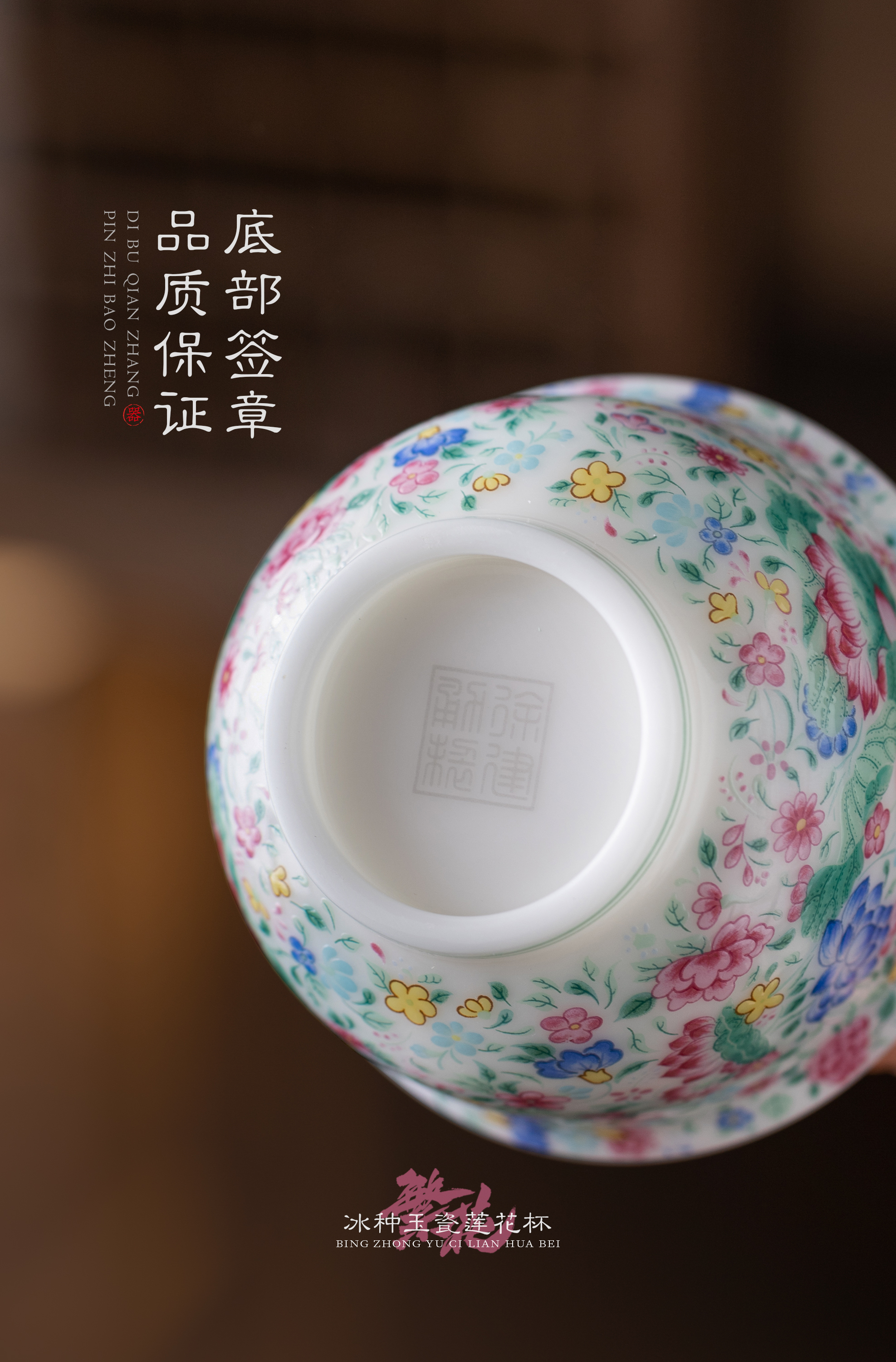 【万花呈瑞 盛世升平】繁花冰种玉瓷莲花杯主人杯 徐建勇大师签章,繁花争艳 推感立体 迎光透亮,精美包装 gao端豪礼
