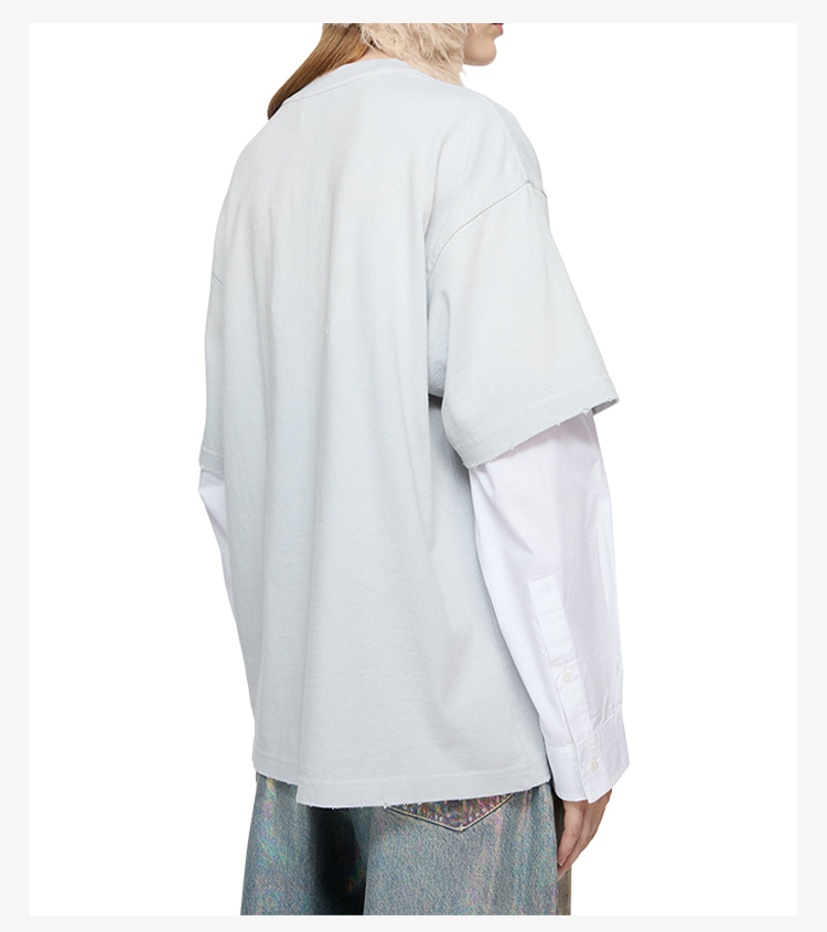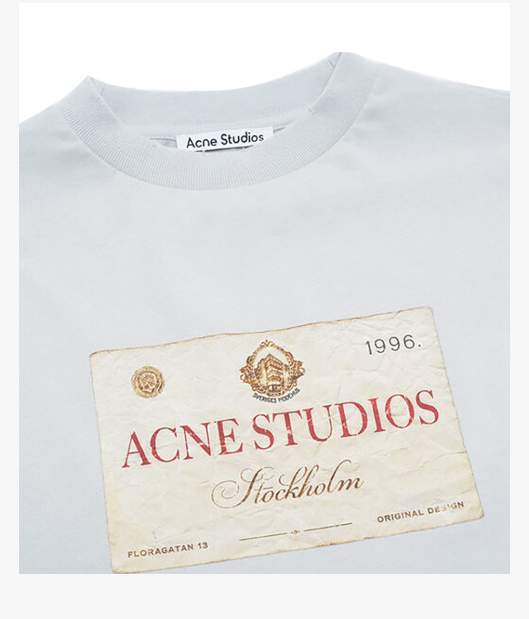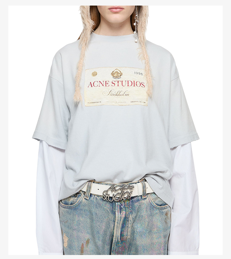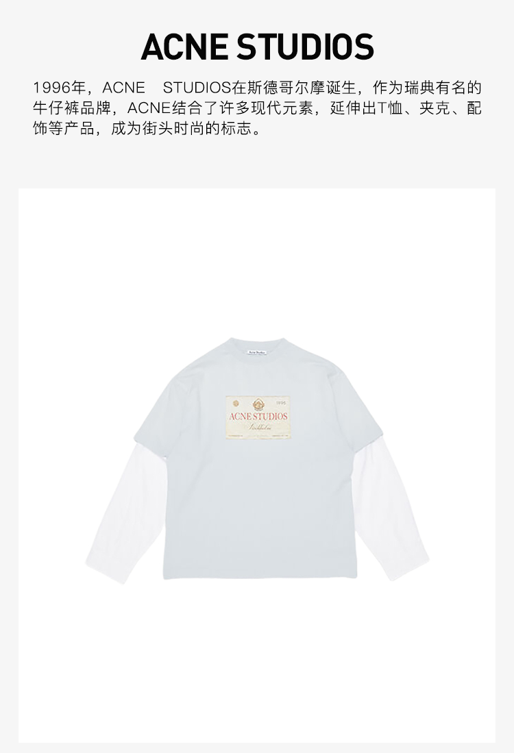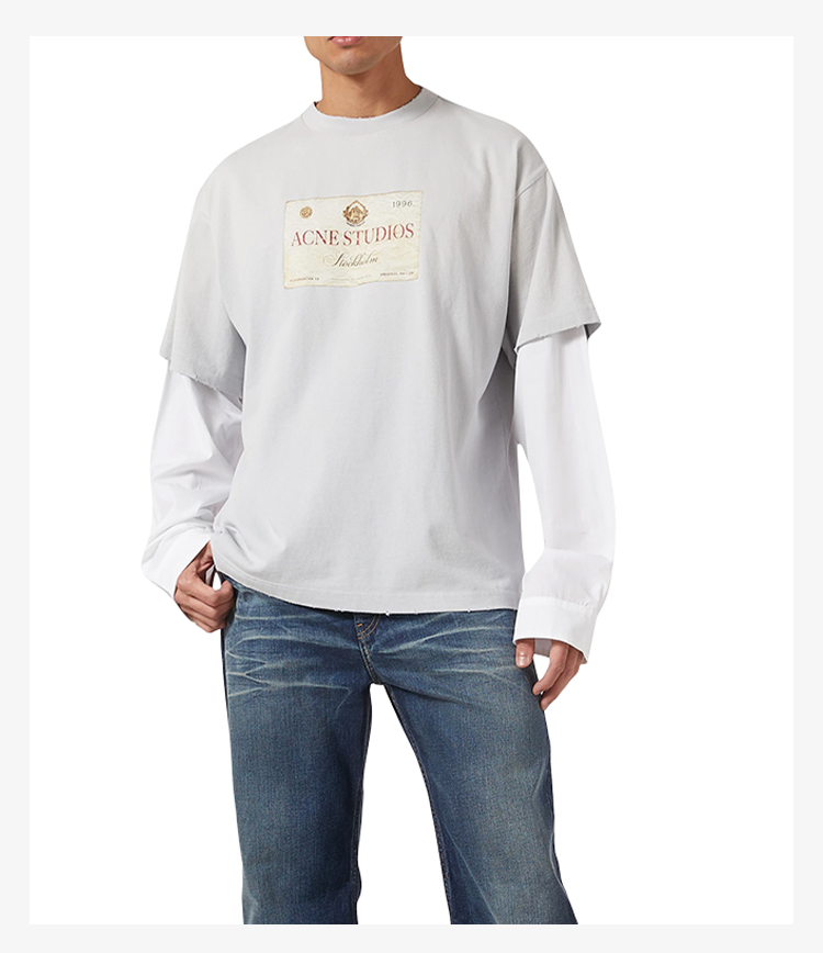 Acne Studios 2025春夏新品 男女同款宽松徽标印花做旧假两件长袖T恤 浅灰色 CL0322