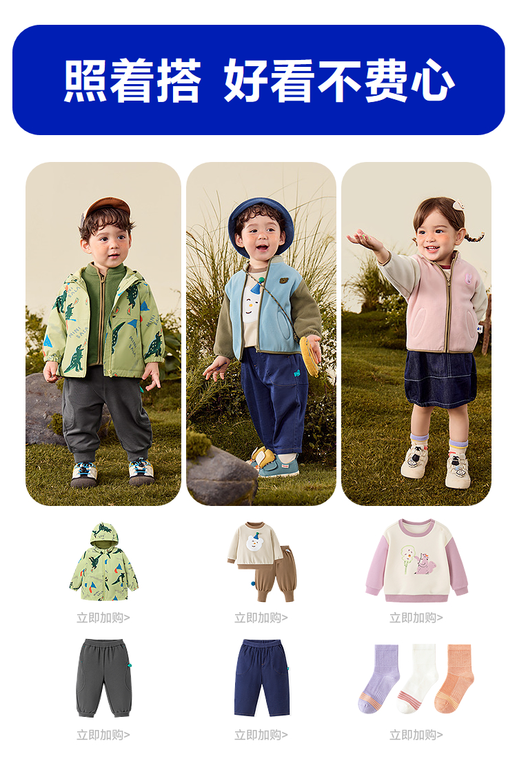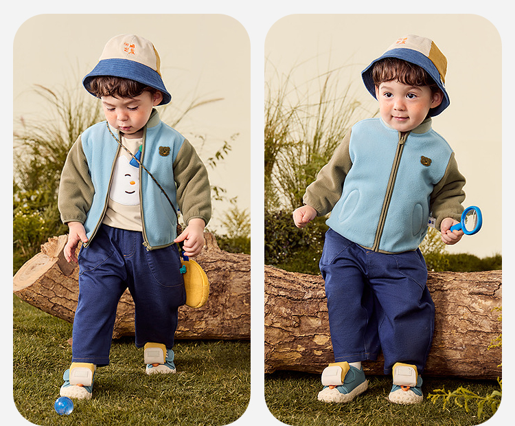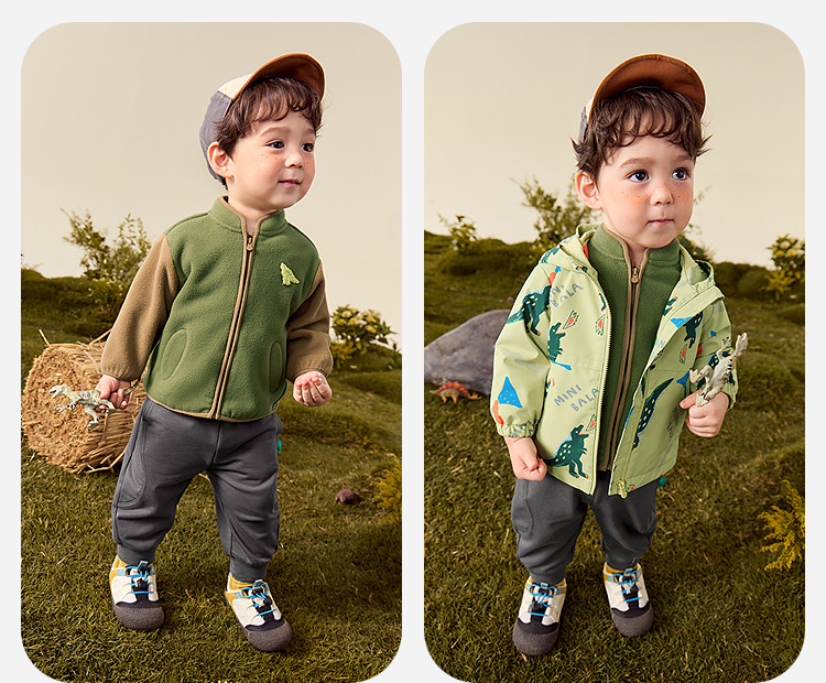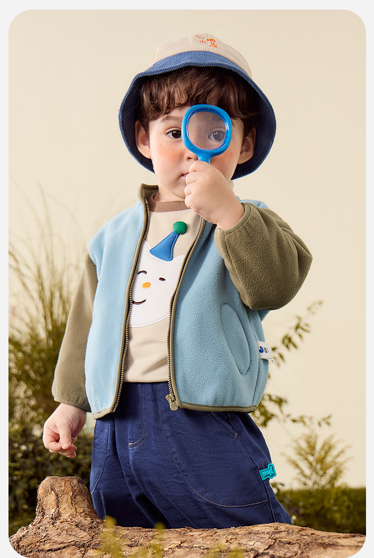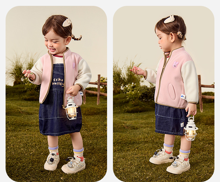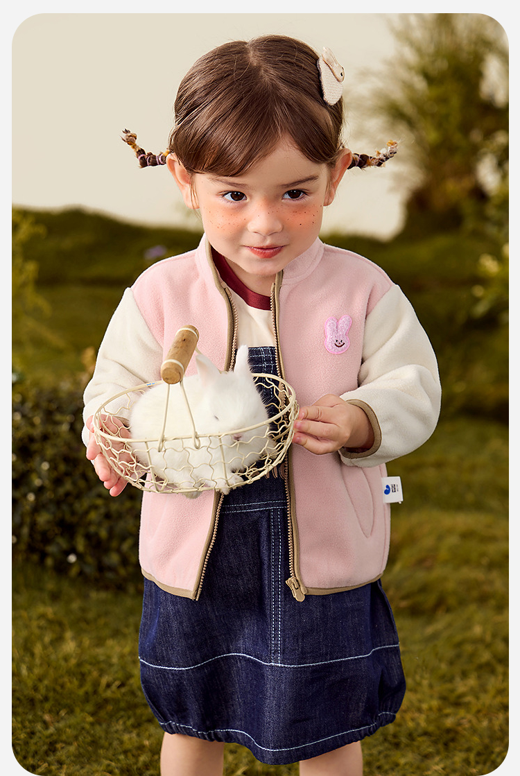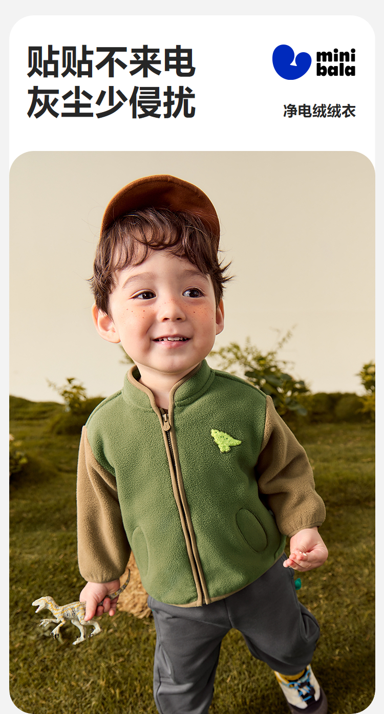 迷你巴拉男童女童毛绒外套宝宝抗静电摇粒绒保暖户外长袖上衣