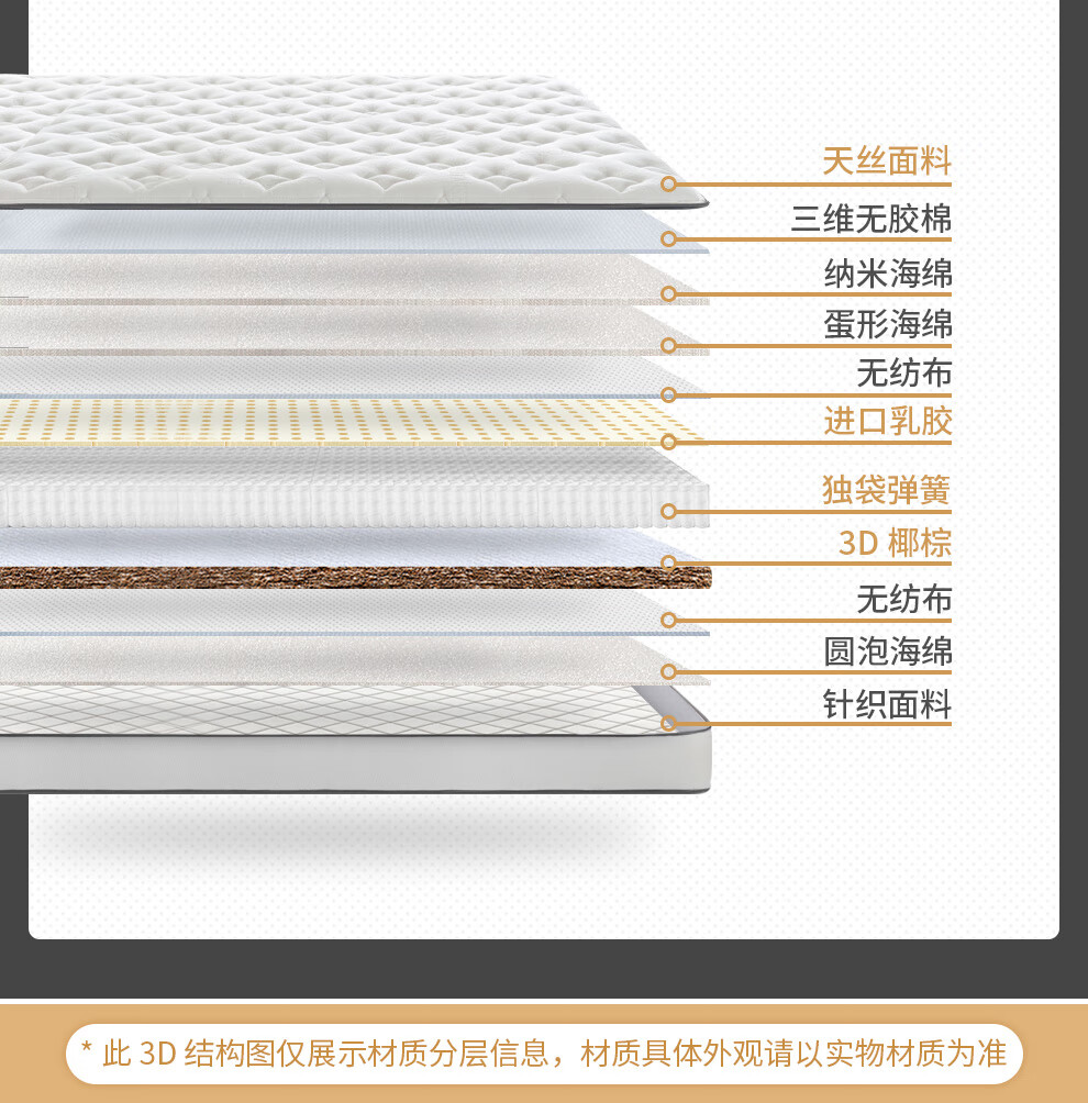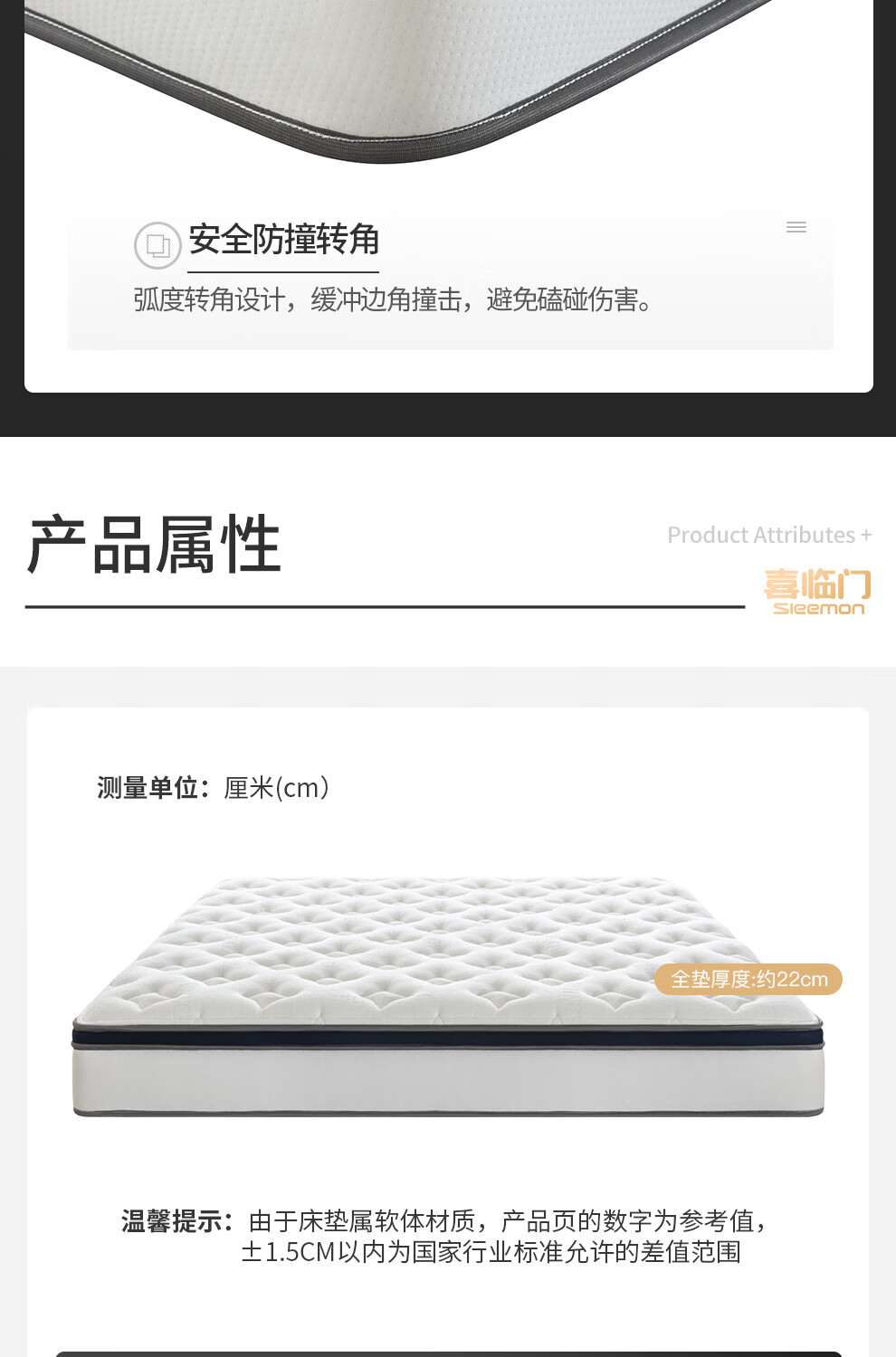 喜临门床垫 乳胶椰棕床垫 独袋弹簧 软硬两用双面睡感 24cm 云寝8124 双面软硬两用床垫1800*2000(1500*2000)