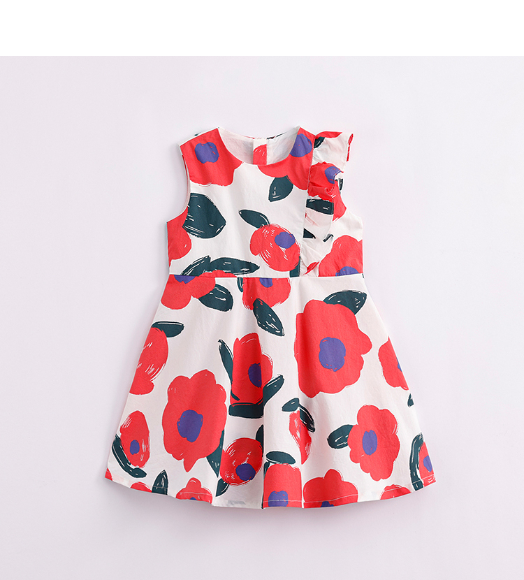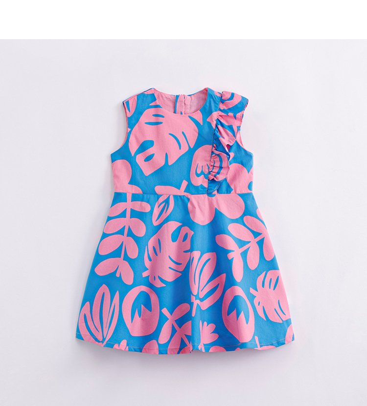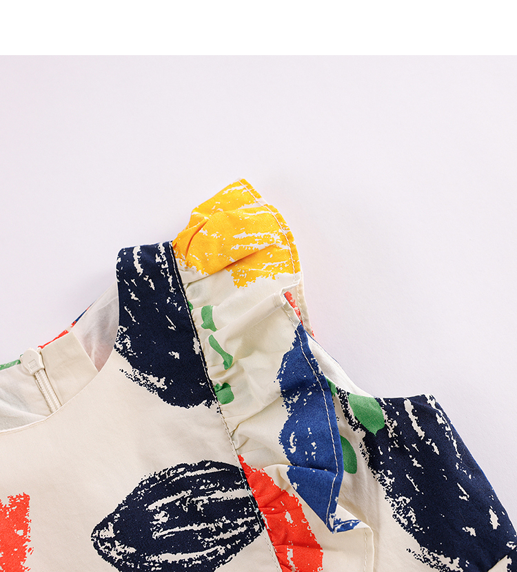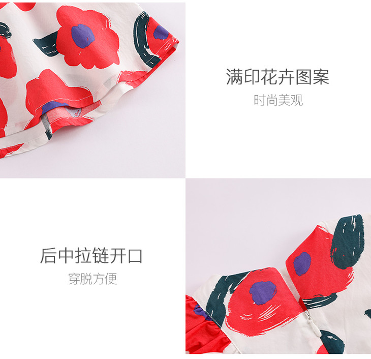 马克珍妮夏装新款 女童北欧风花边领纯棉连衣裙230009