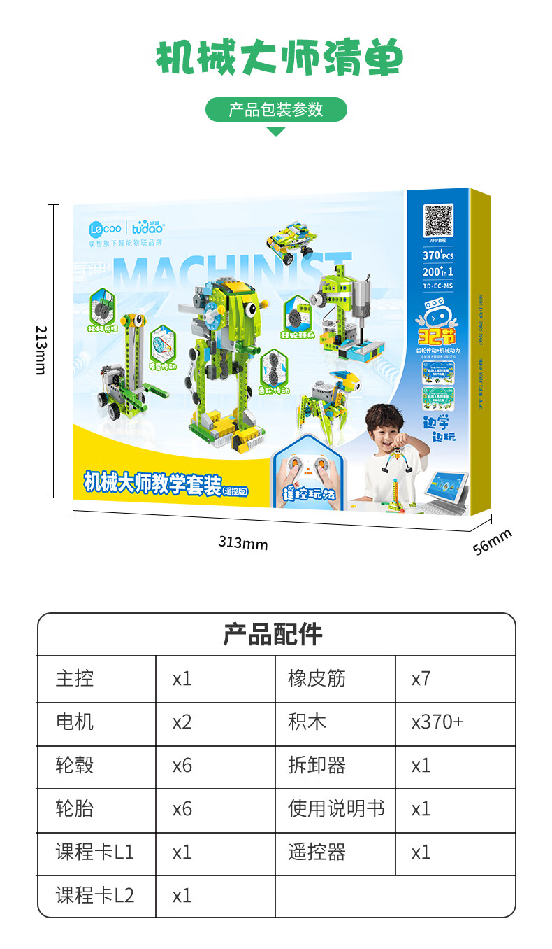 途道(tudao)机械大师教学套装遥控版电动科教积木拼装男女孩玩具生日礼物