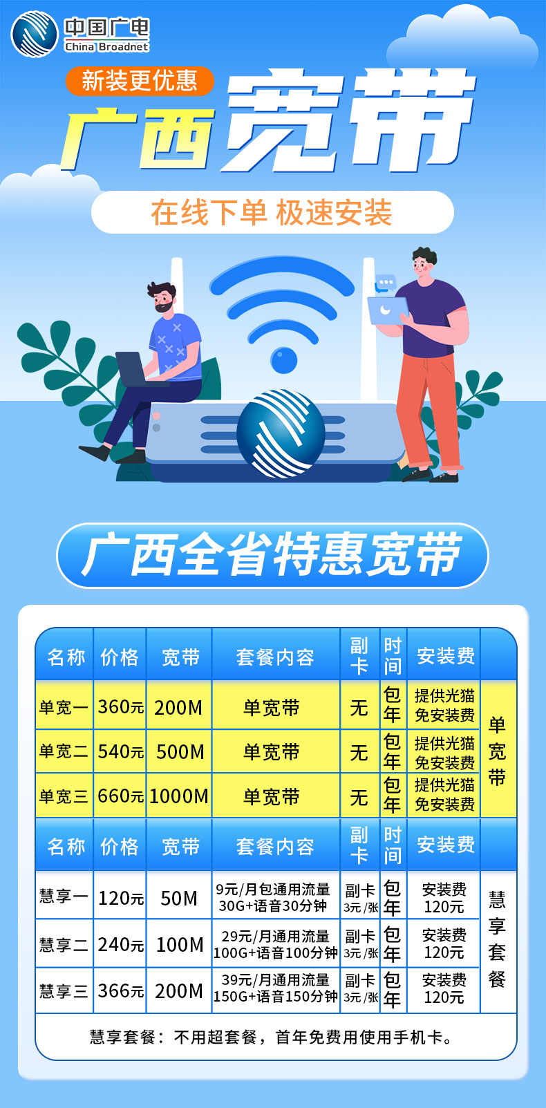 特惠宽带办理 单宽带 手机卡套餐宽带