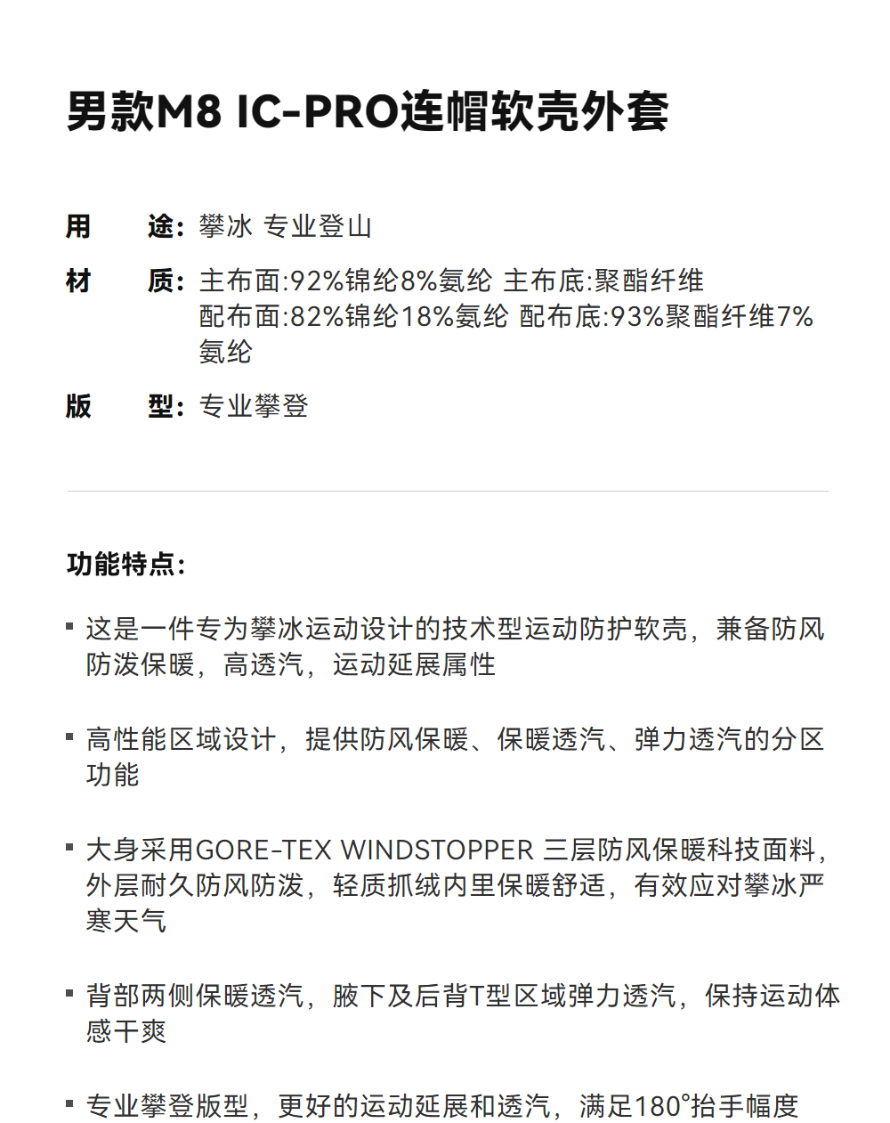 KAILAS凯乐石 男款M8 IC-PRO 连帽软壳外套 KG2439119
