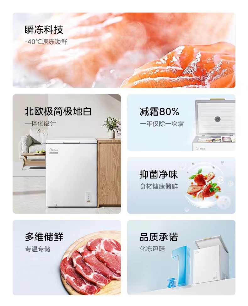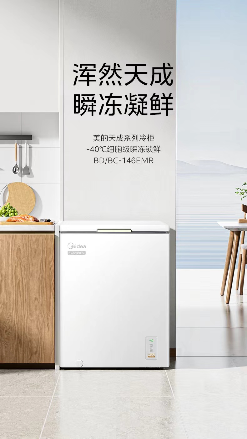 美的(Midea)(202826)冰柜家用200升无需除霜一级能效小冷柜小型出租房用小冰柜节能净味减霜80%冷藏冷冻转换 146EMR【减霜80%PCM内胆】 146L BD/BC-146EMR