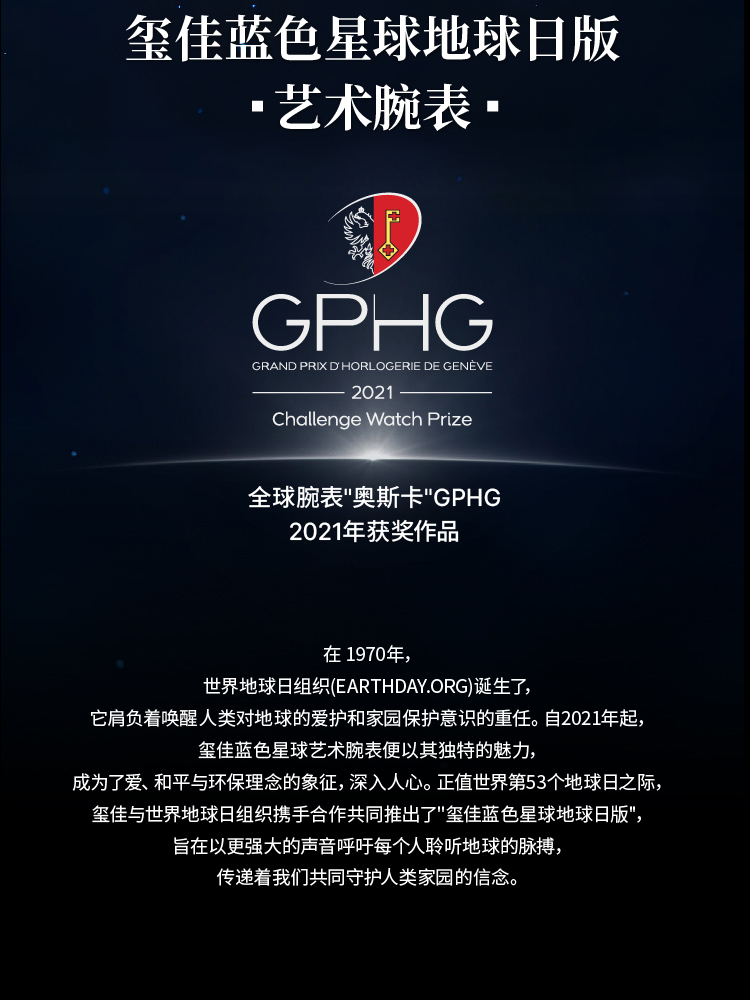 CIGA design玺佳机械表U系列蓝色星球地球表日晷荣获GPHG男士手表