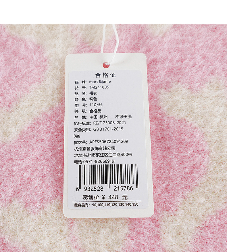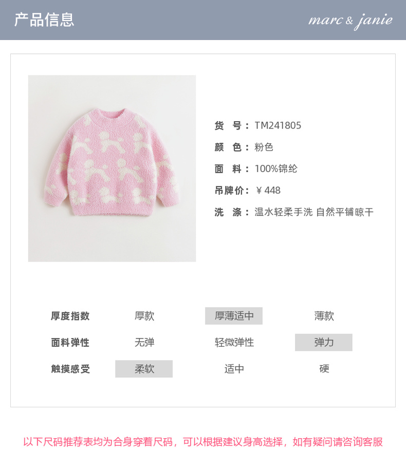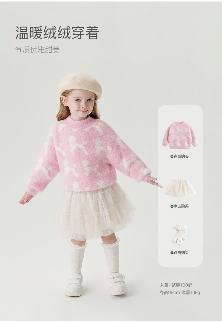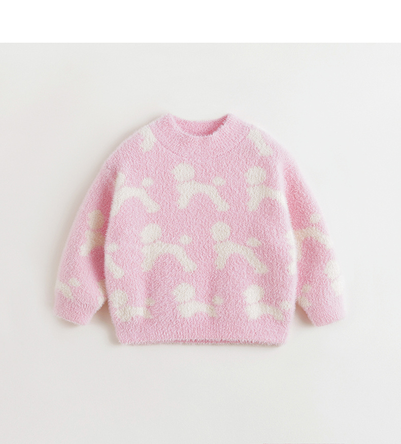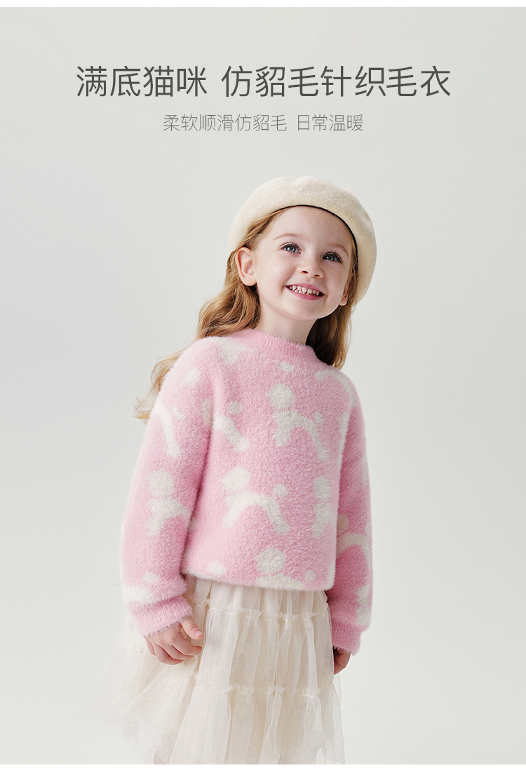 马克珍妮女童满底猫咪仿貂毛毛衣儿童针织衫2024年秋冬新款241805