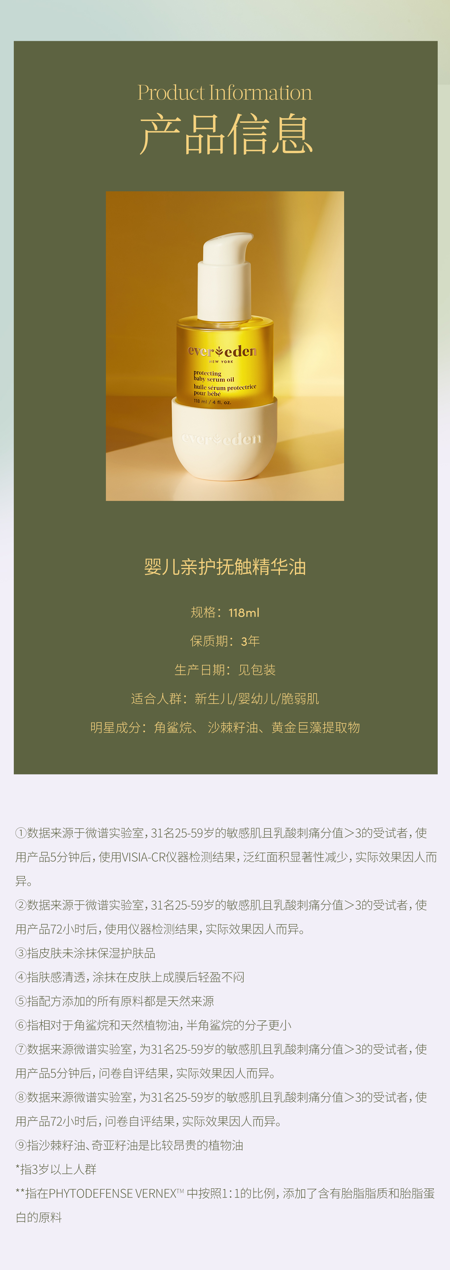 【套组】Evereden安唯伊胎脂系列亲护抚触按摩精华油118ml 2件套