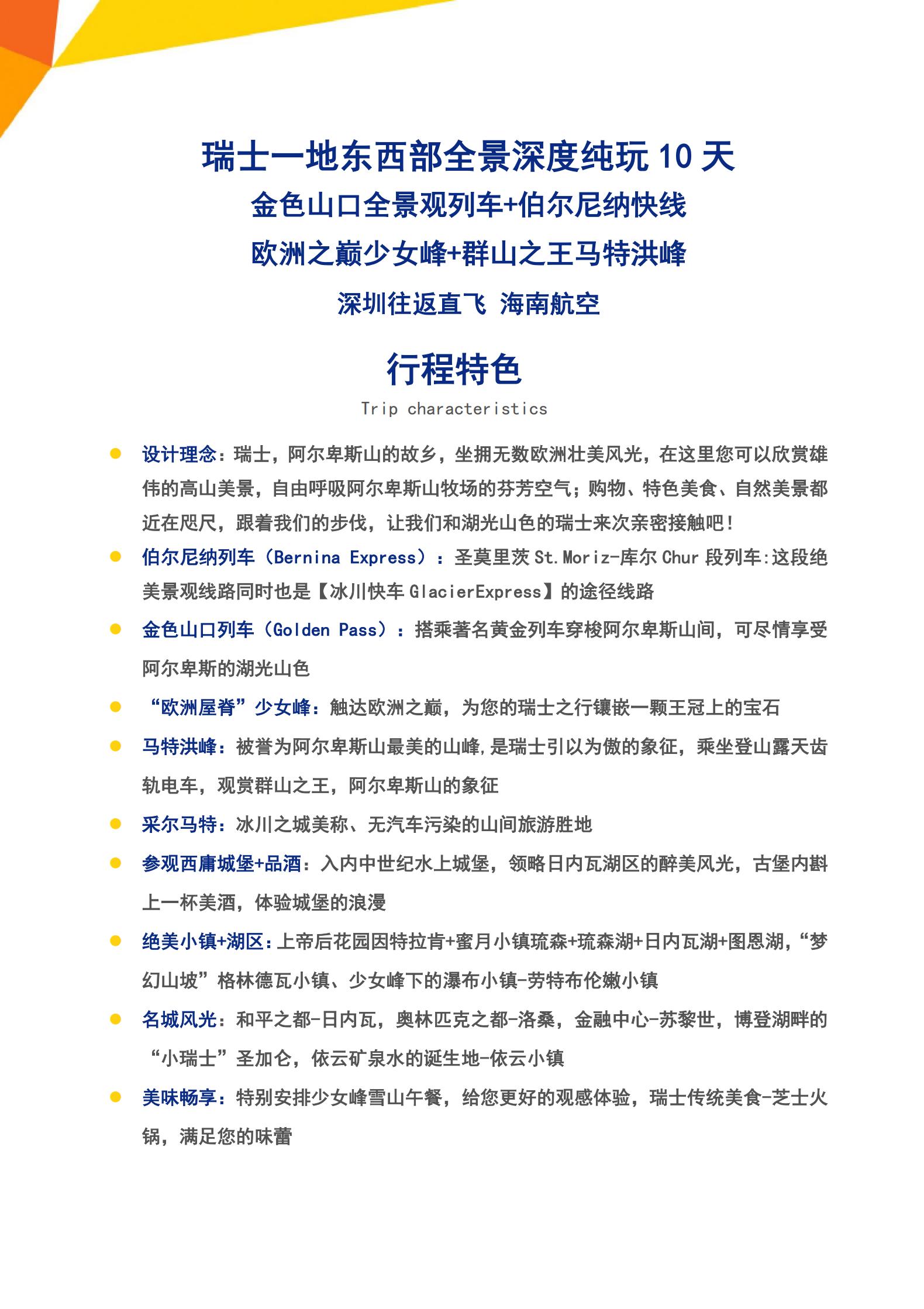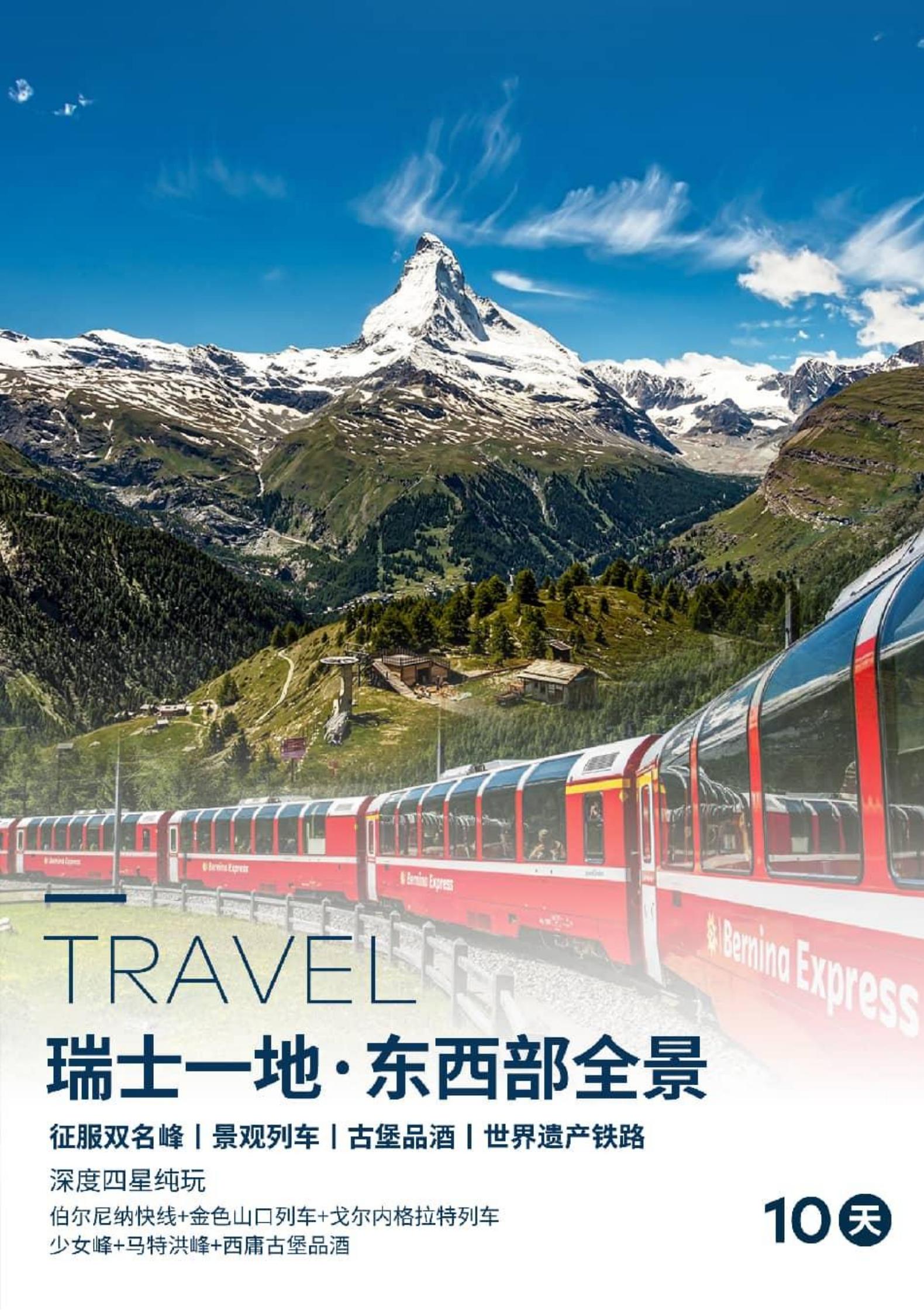 【暑假、国庆】<瑞士一地东西部全景深度纯玩10天-深圳往返>金色山口全景观列车+伯尔尼纳快线+欧洲之巅少女峰+群山之王马特洪峰