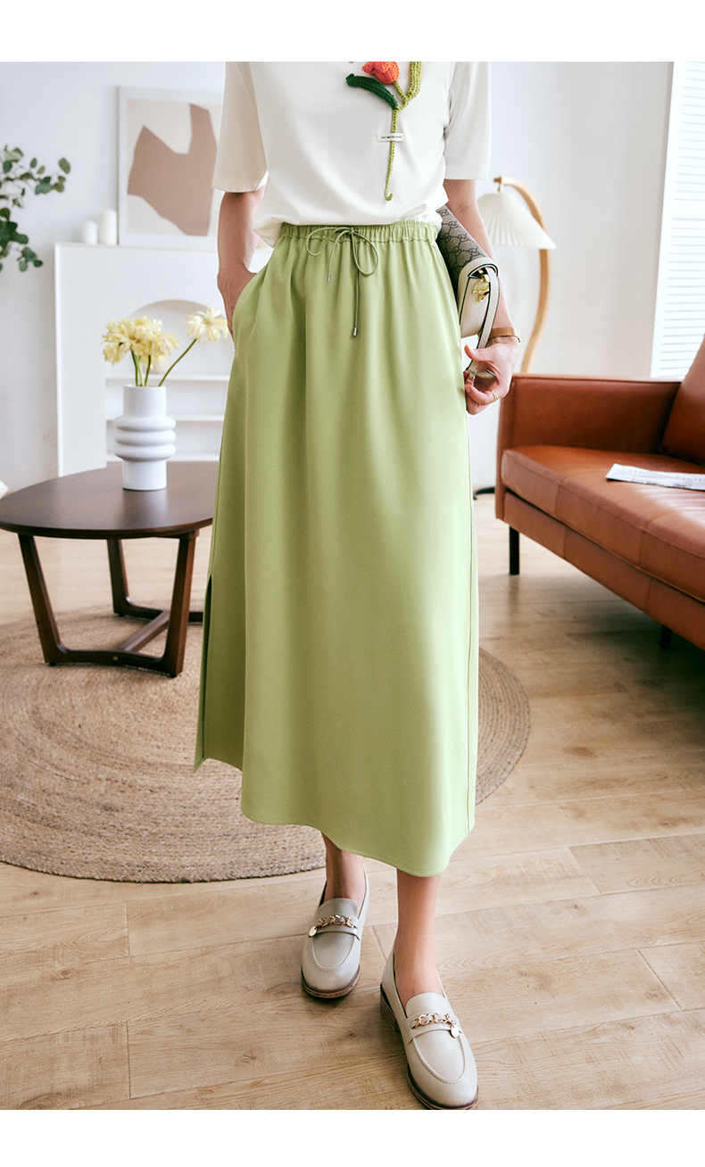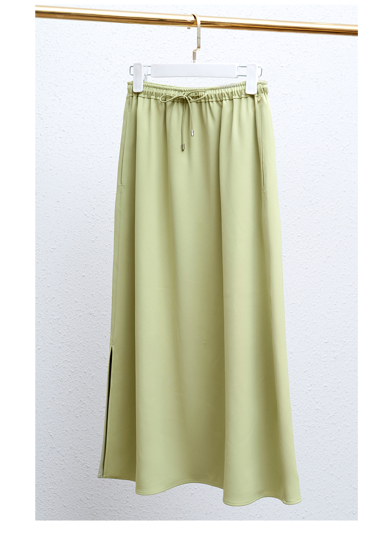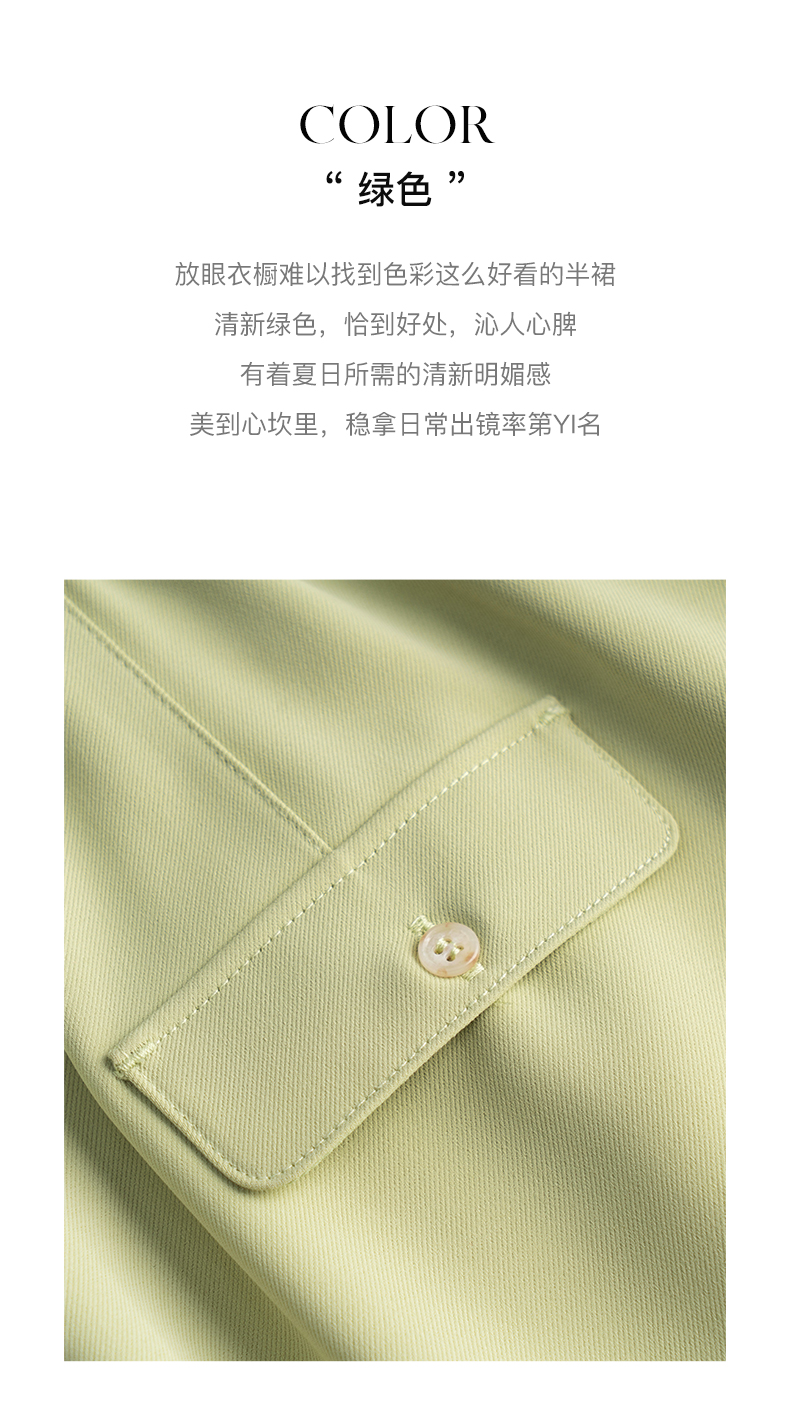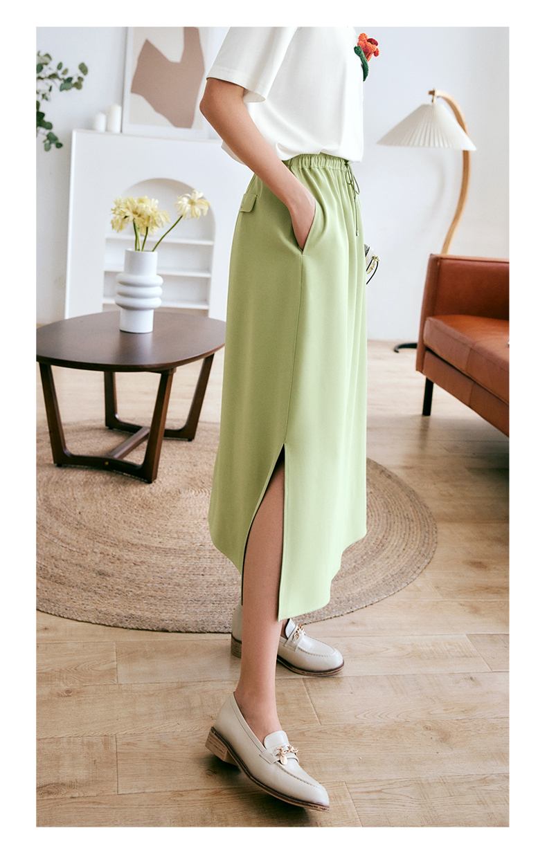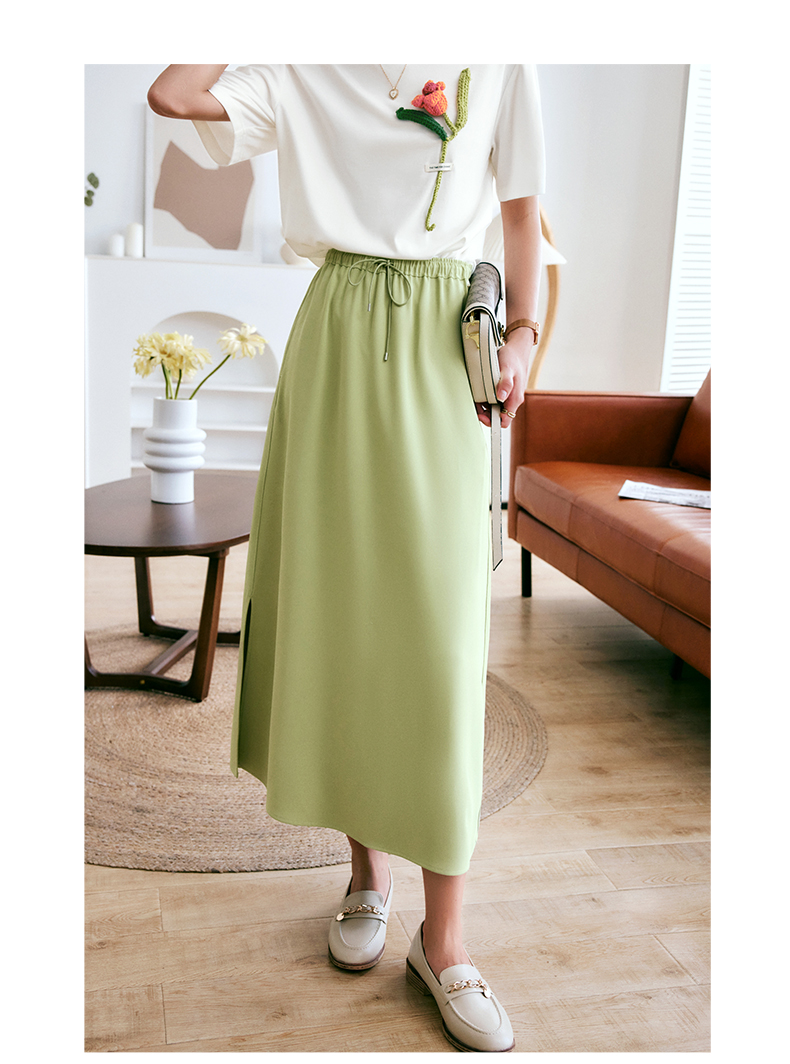 欧芮儿OLrain法式绿色半身裙女夏季2022新款高腰直筒开叉a字裙