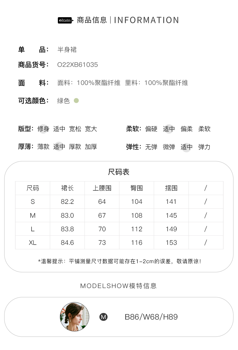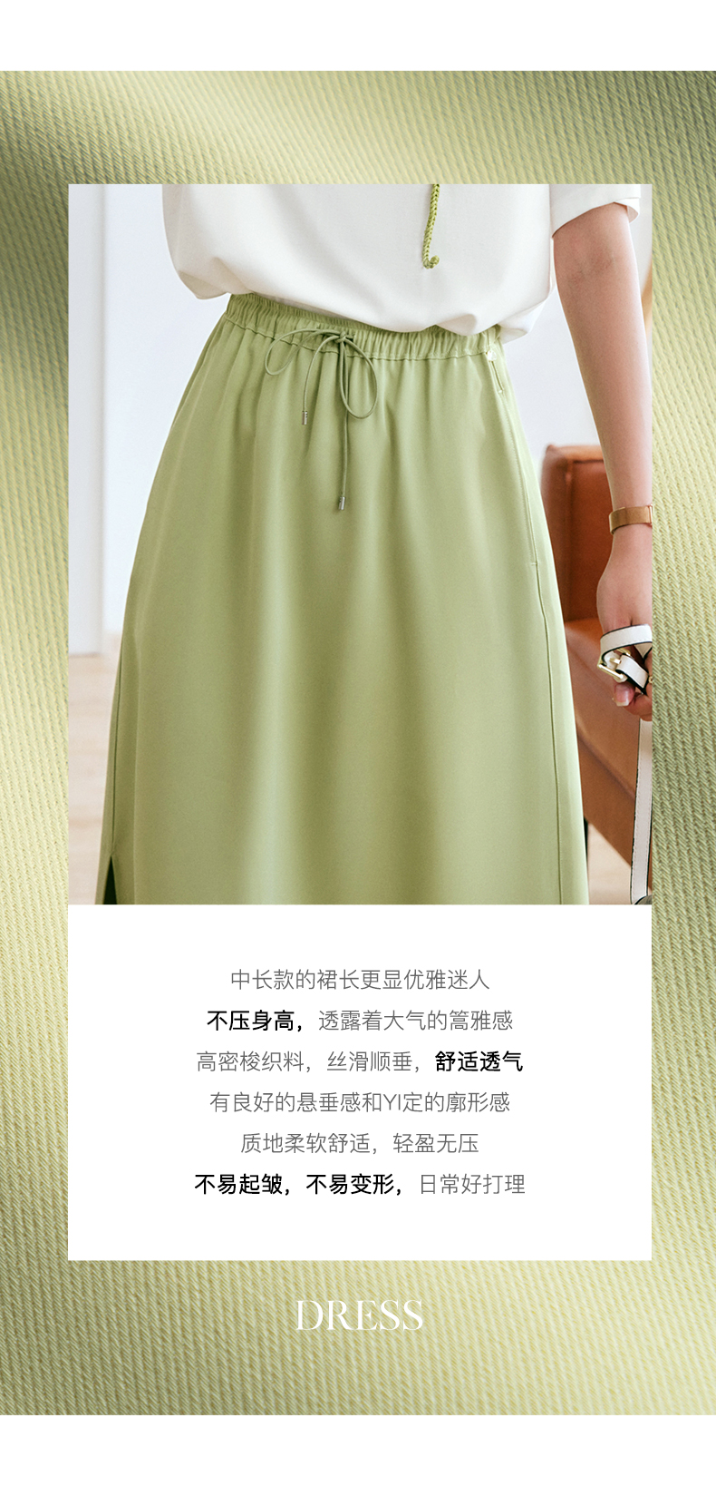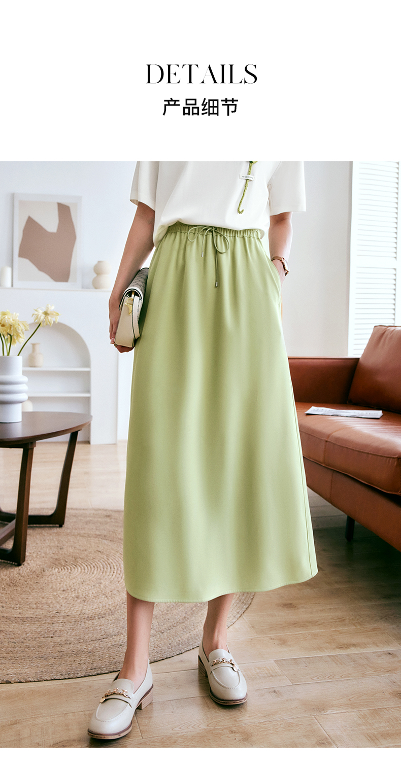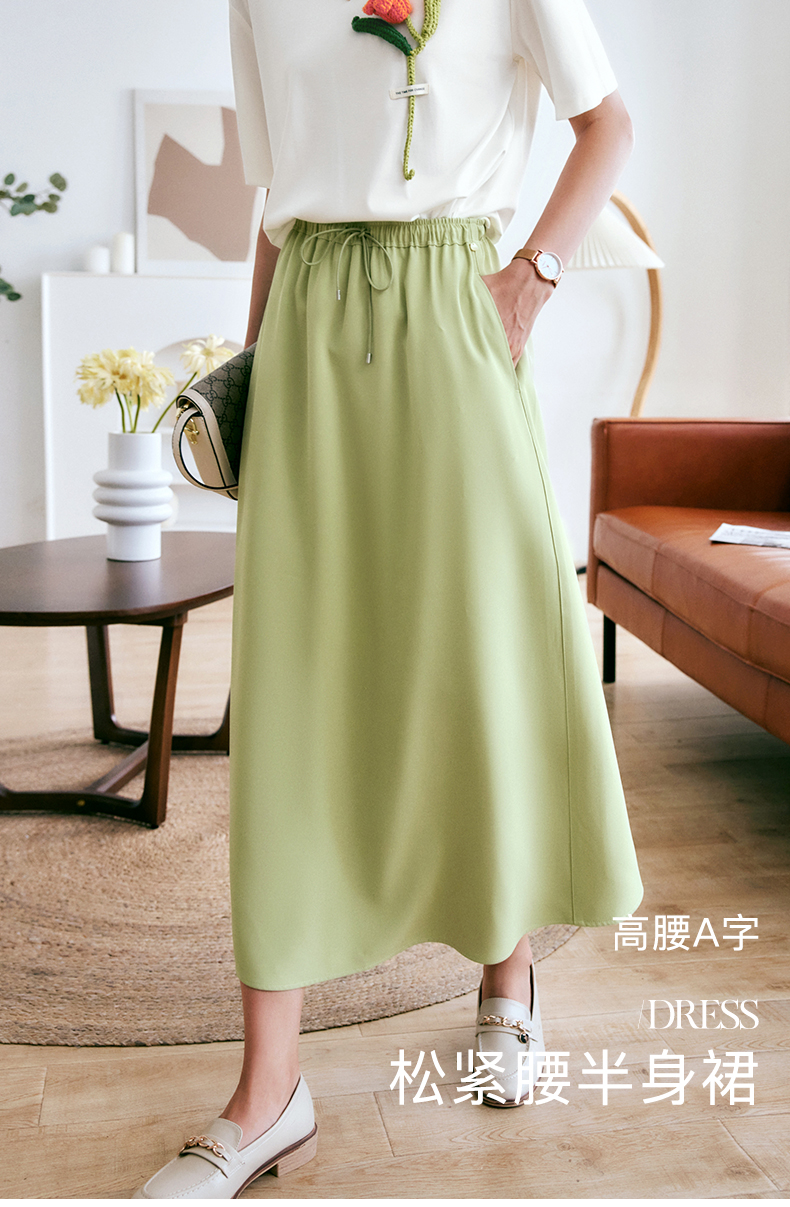 欧芮儿OLrain法式绿色半身裙女夏季2022新款高腰直筒开叉a字裙