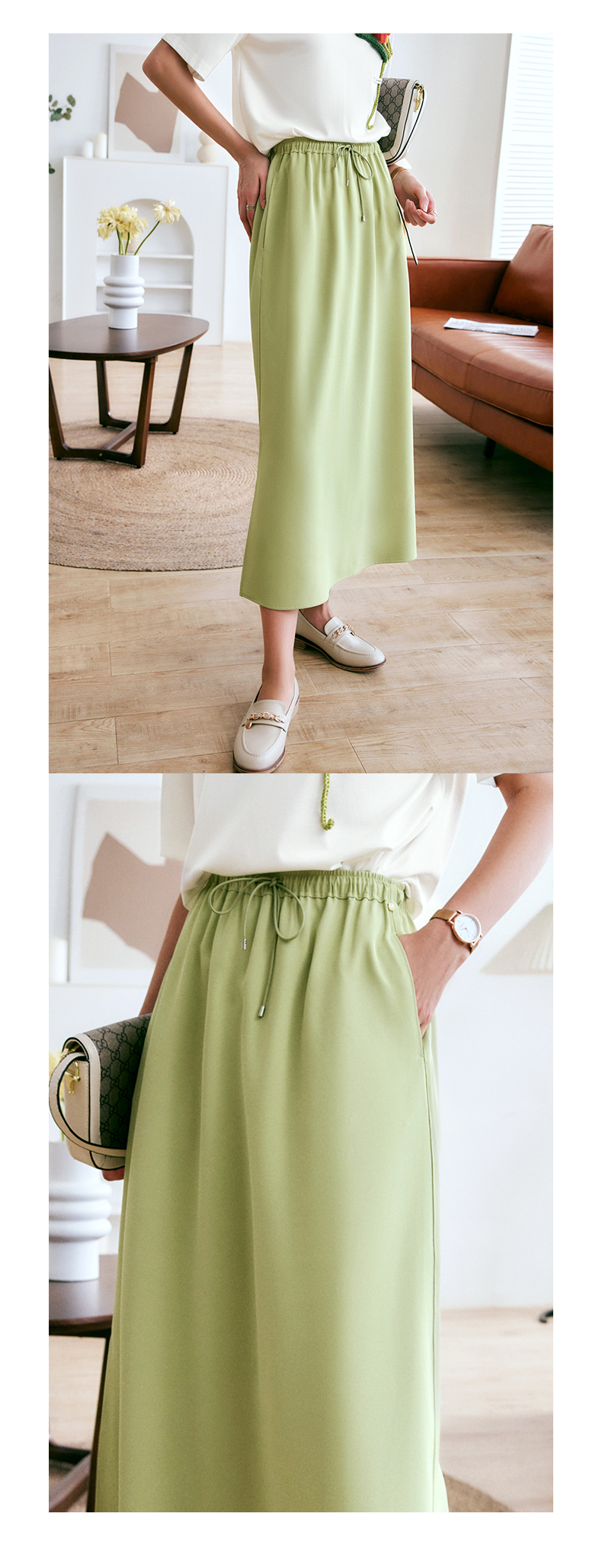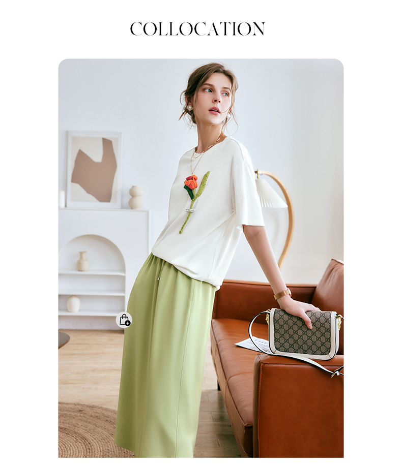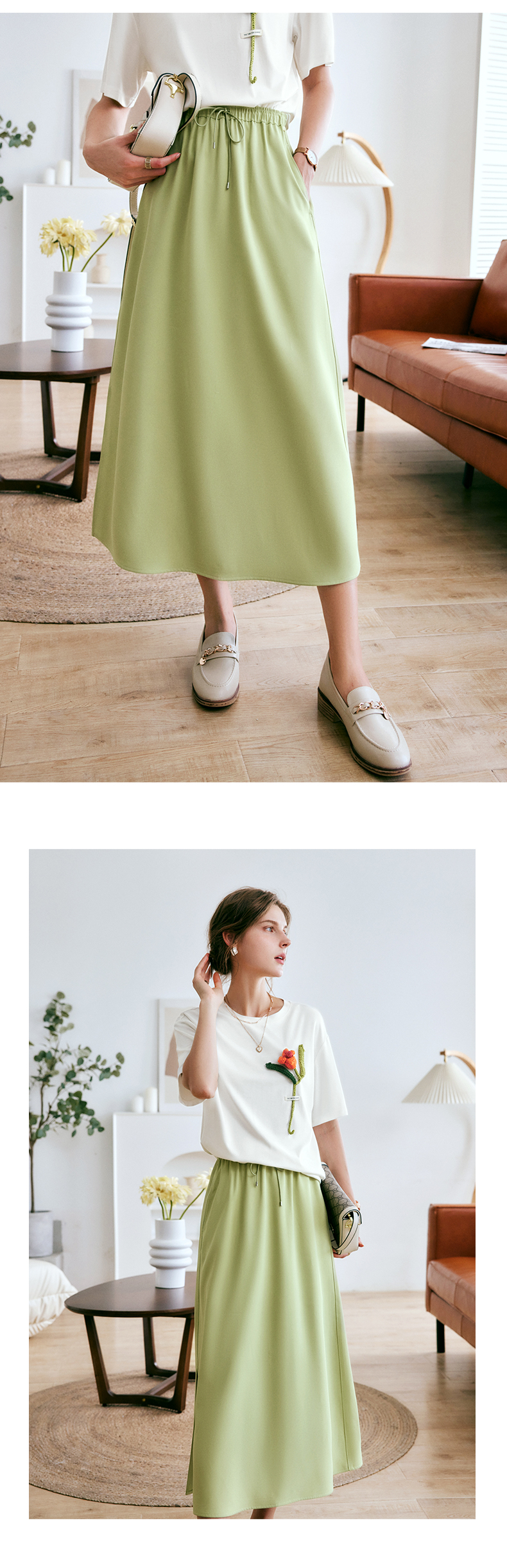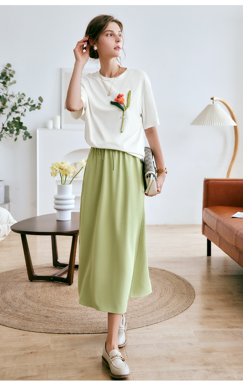 欧芮儿OLrain法式绿色半身裙女夏季2022新款高腰直筒开叉a字裙