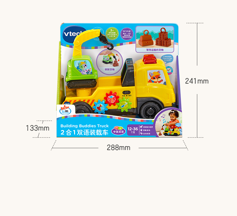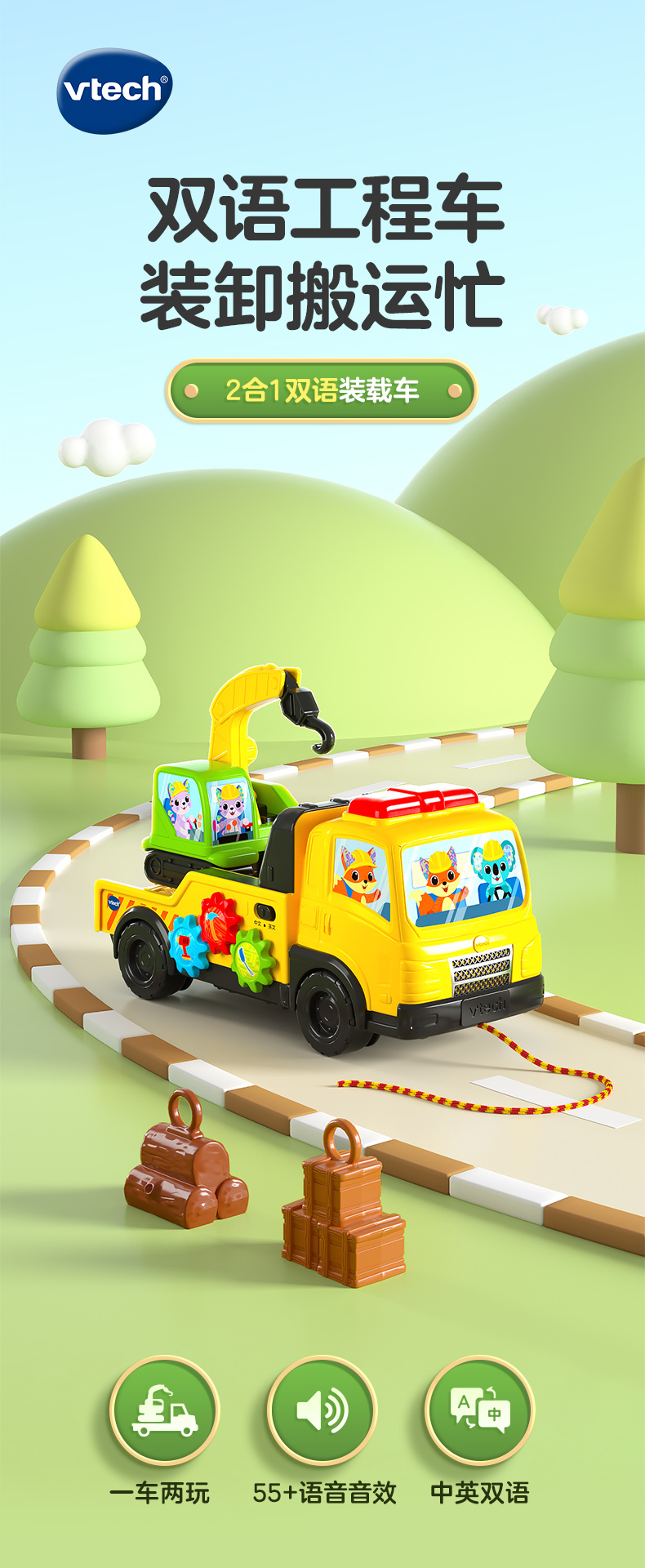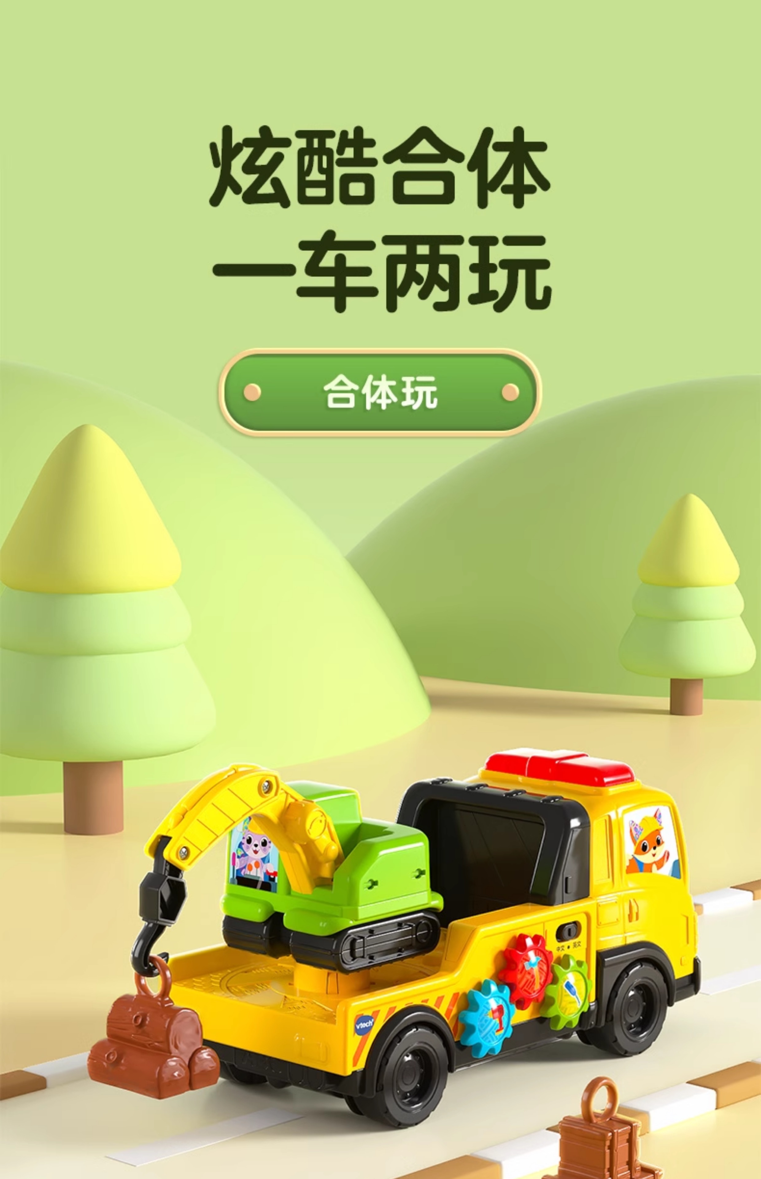 伟易达2合1双语装载车工程车车模玩具大吊车工程车
