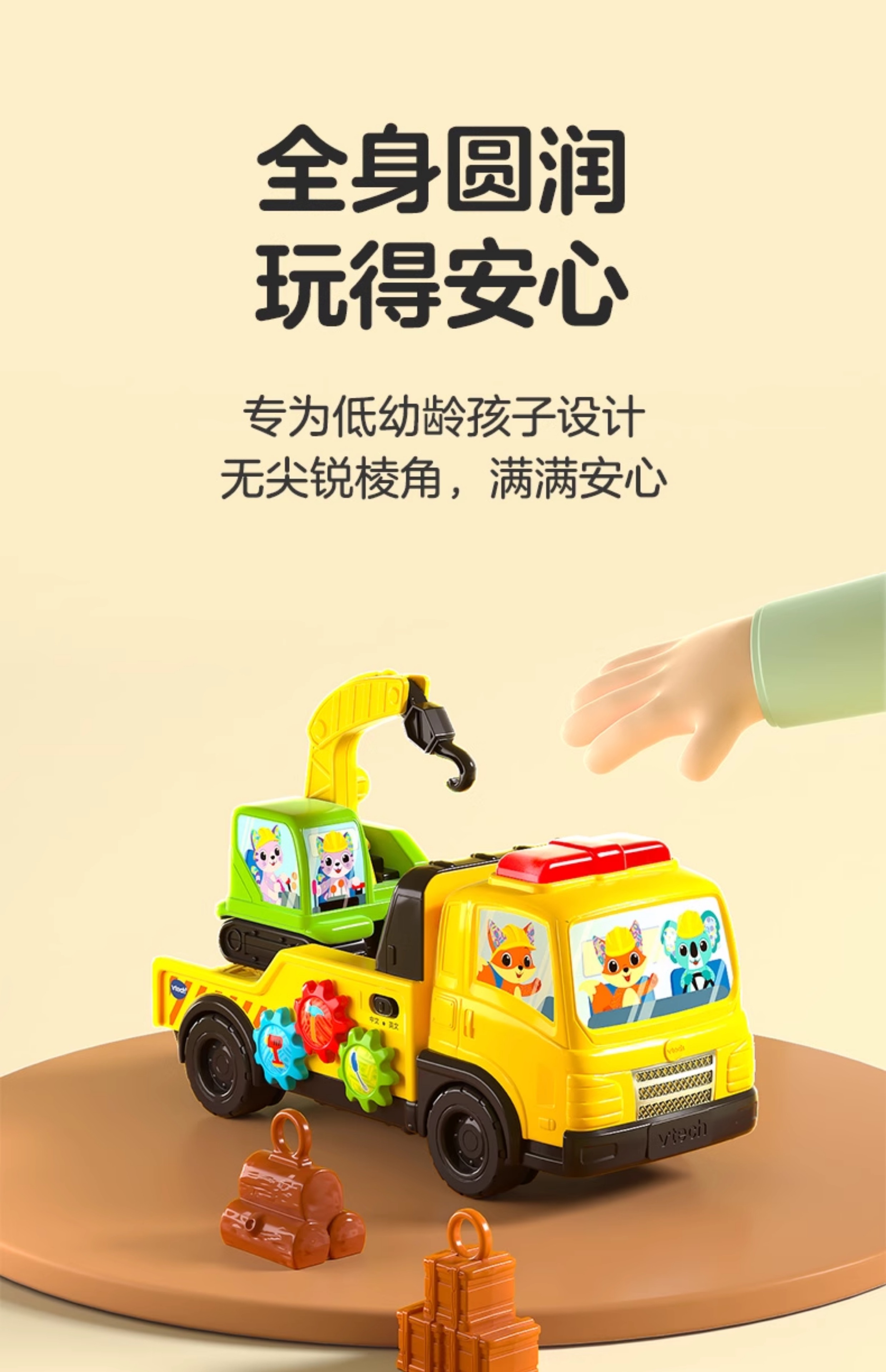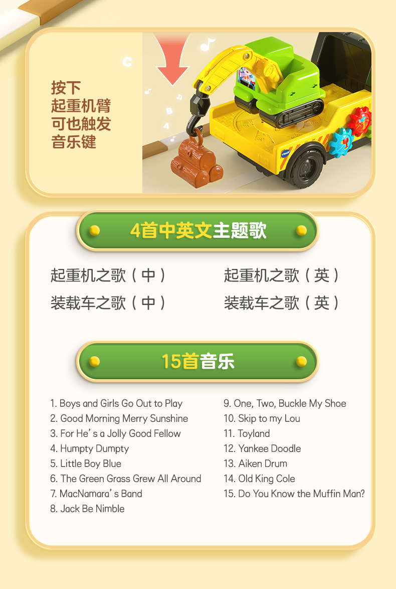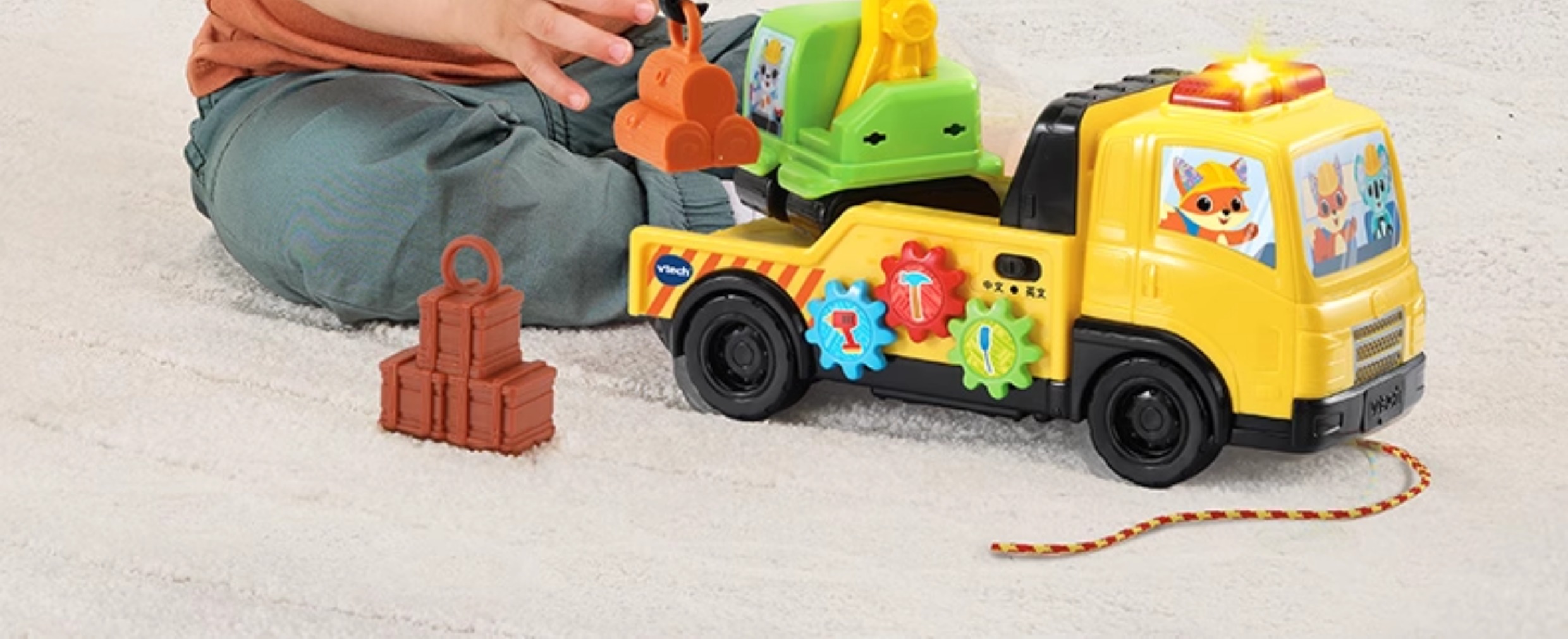 伟易达2合1双语装载车工程车车模玩具大吊车工程车