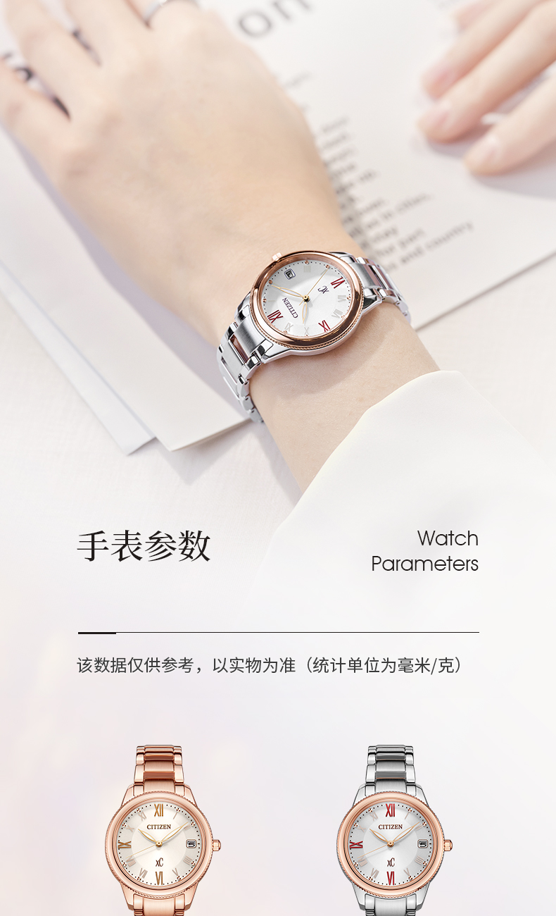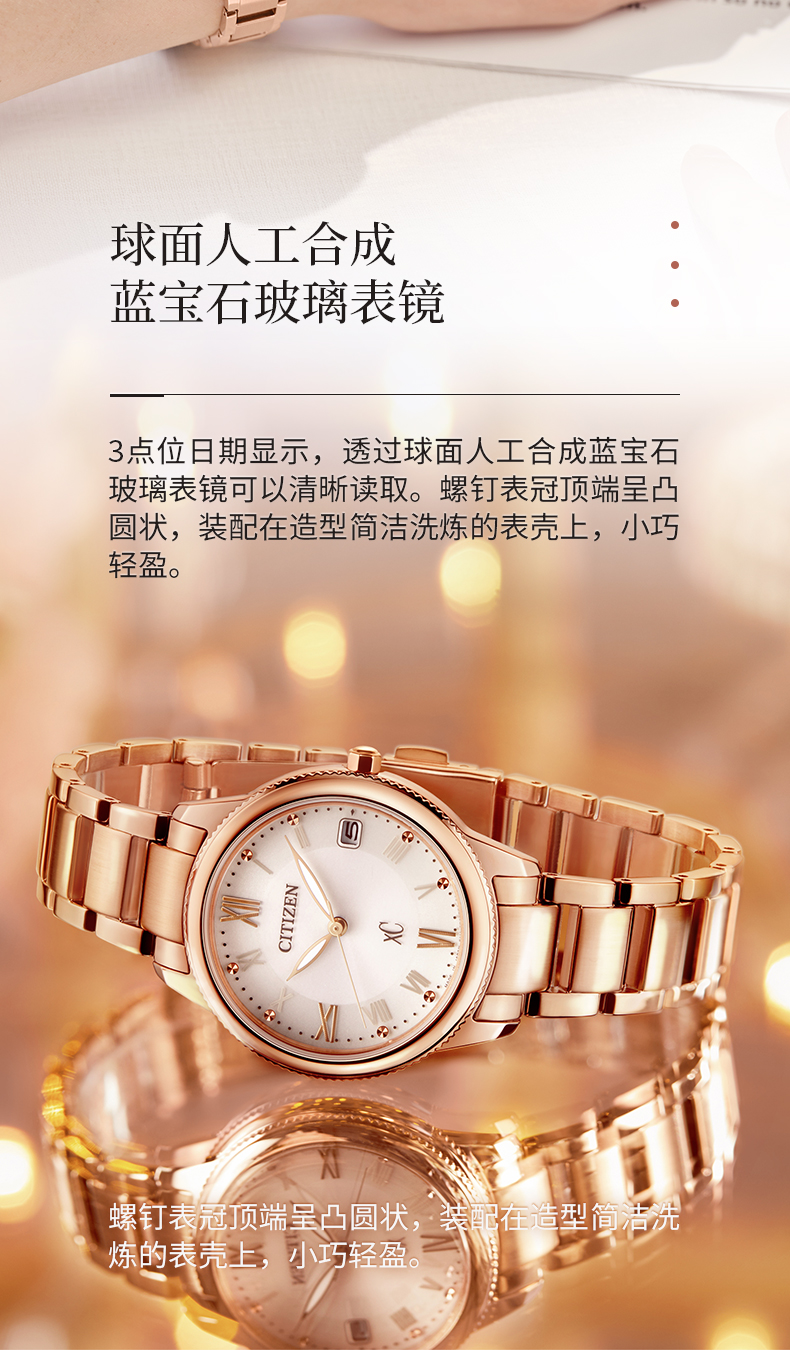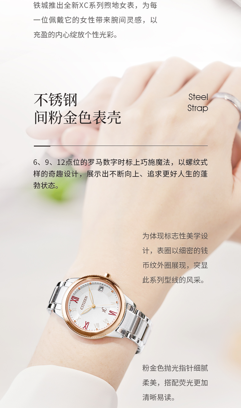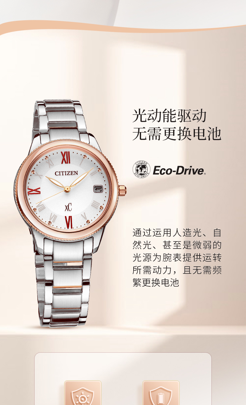 西铁城(CITIZEN)光动能女表不锈钢镀粉金色女款EO1232-56W