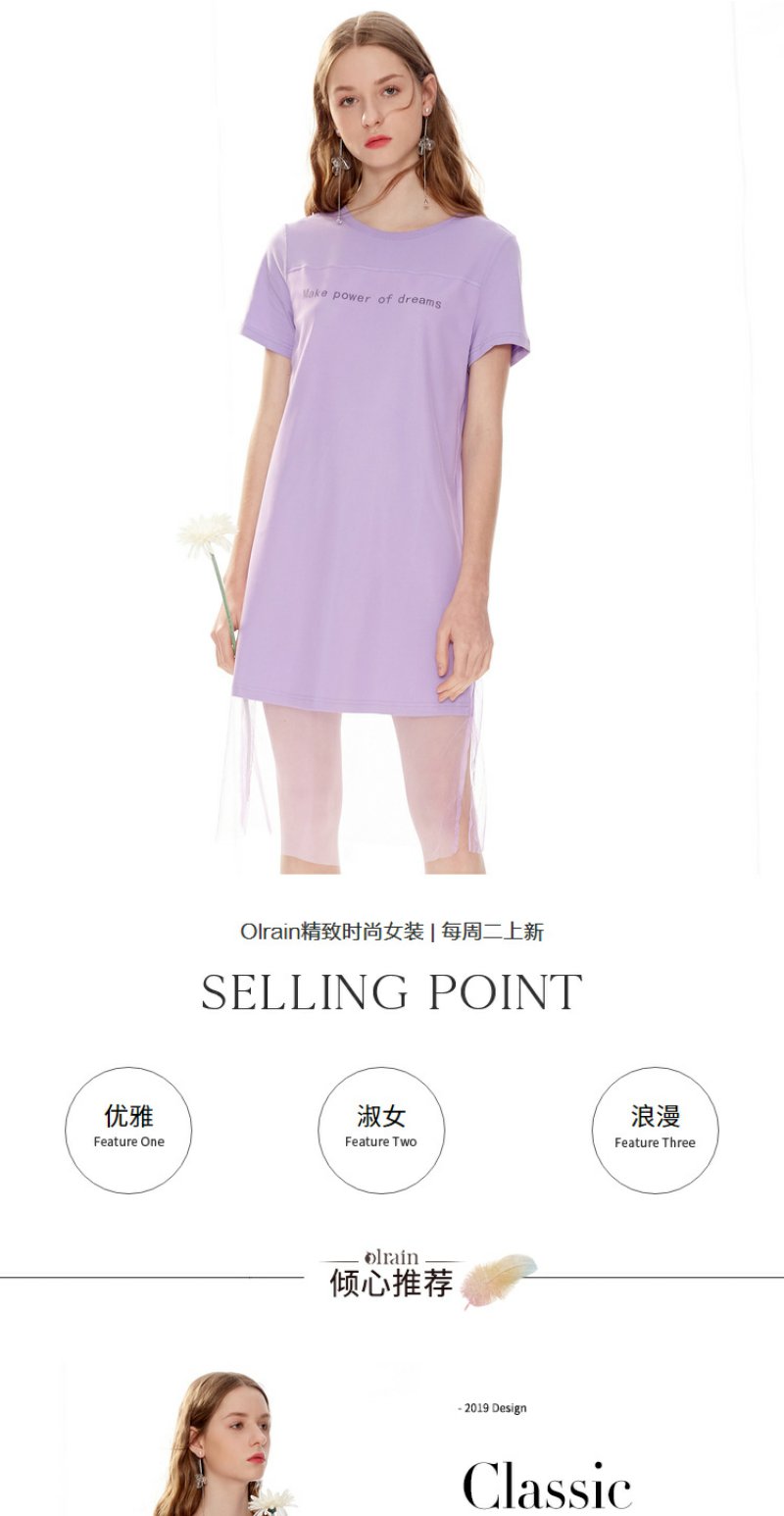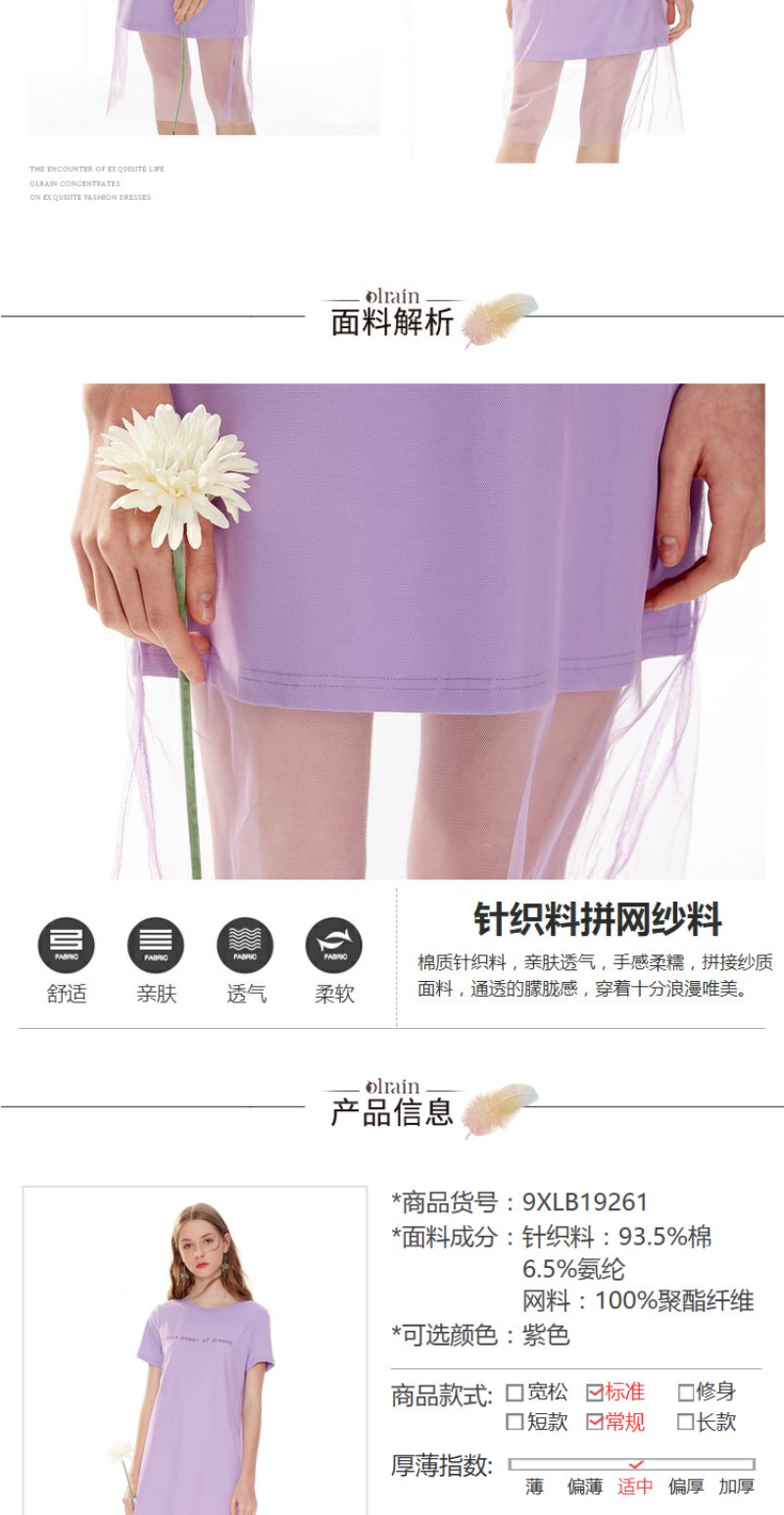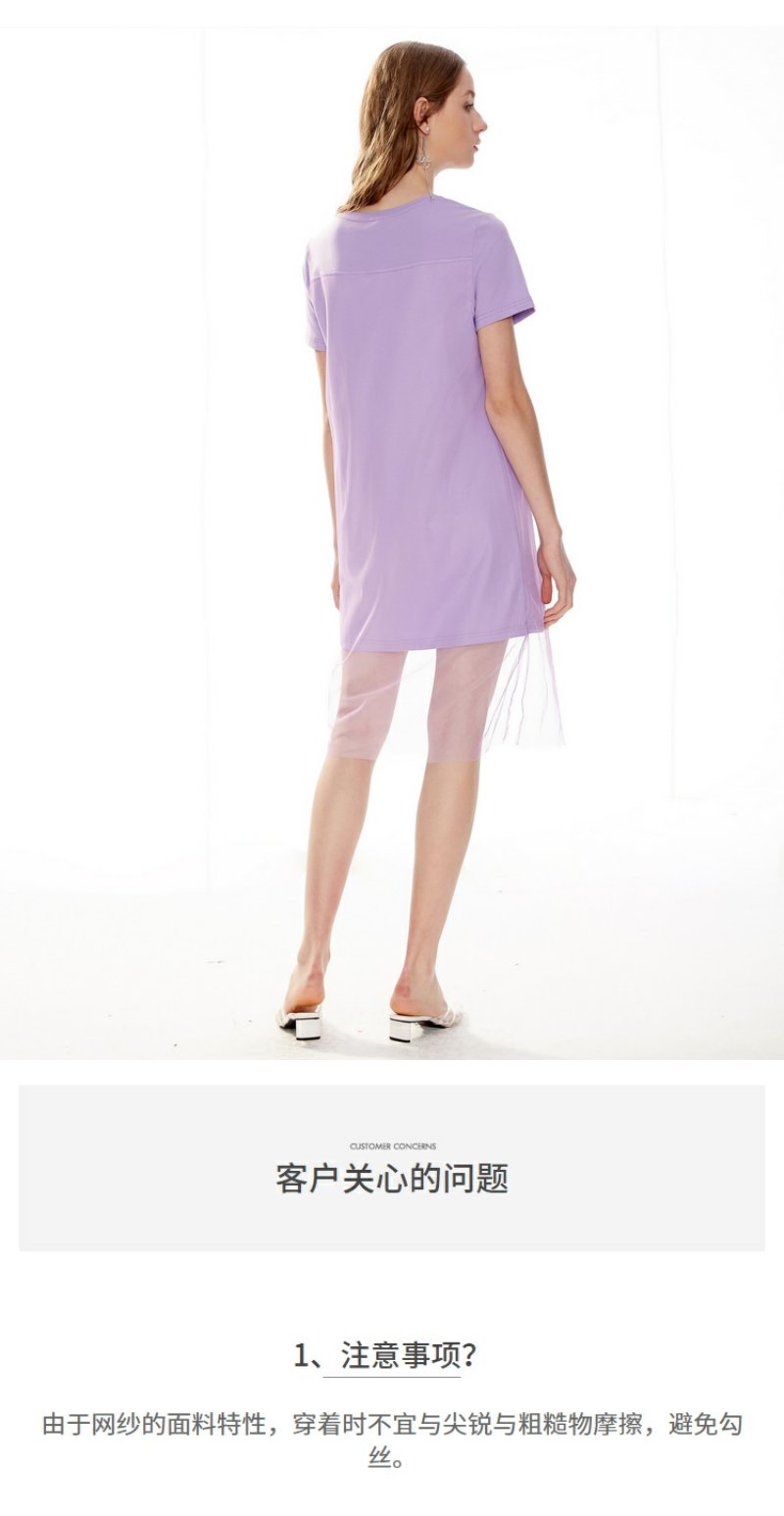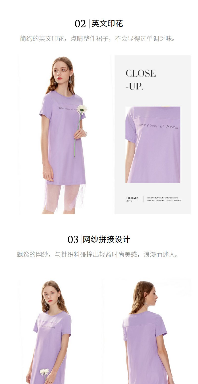 欧芮儿夏装女装字母印花t恤连衣裙女中长款拼接网纱女裙