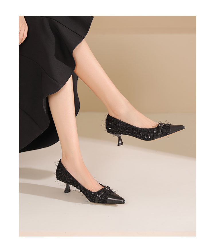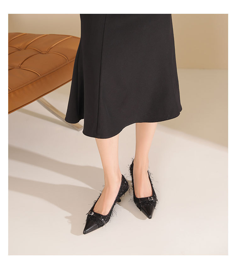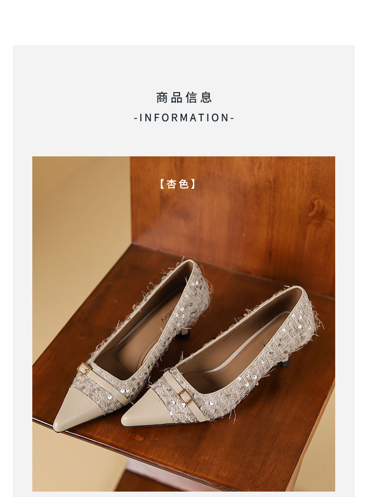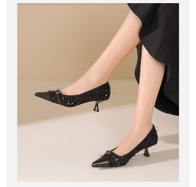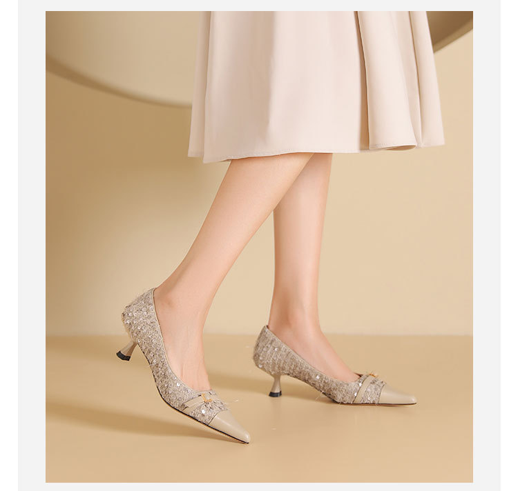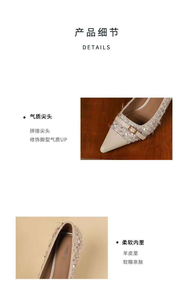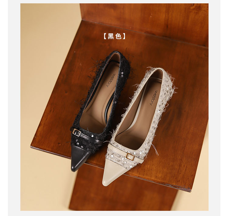 westory新款时尚优雅单鞋小尖头中低跟气质百搭平底鞋女S24CE75041