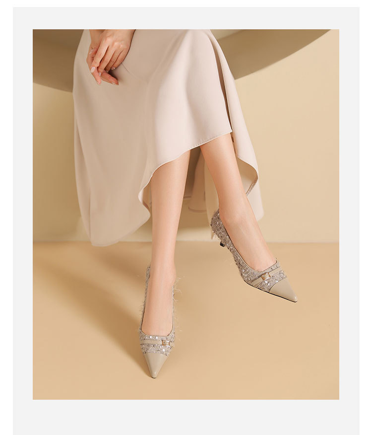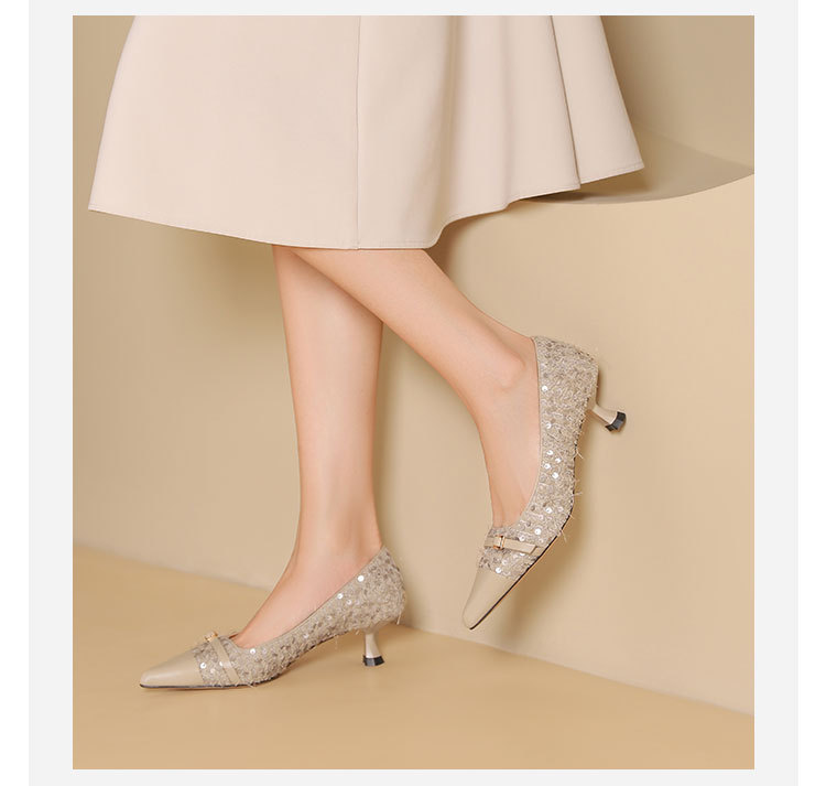 westory女鞋春季新款羊皮尖头高跟鞋细跟浅口婚鞋52641
