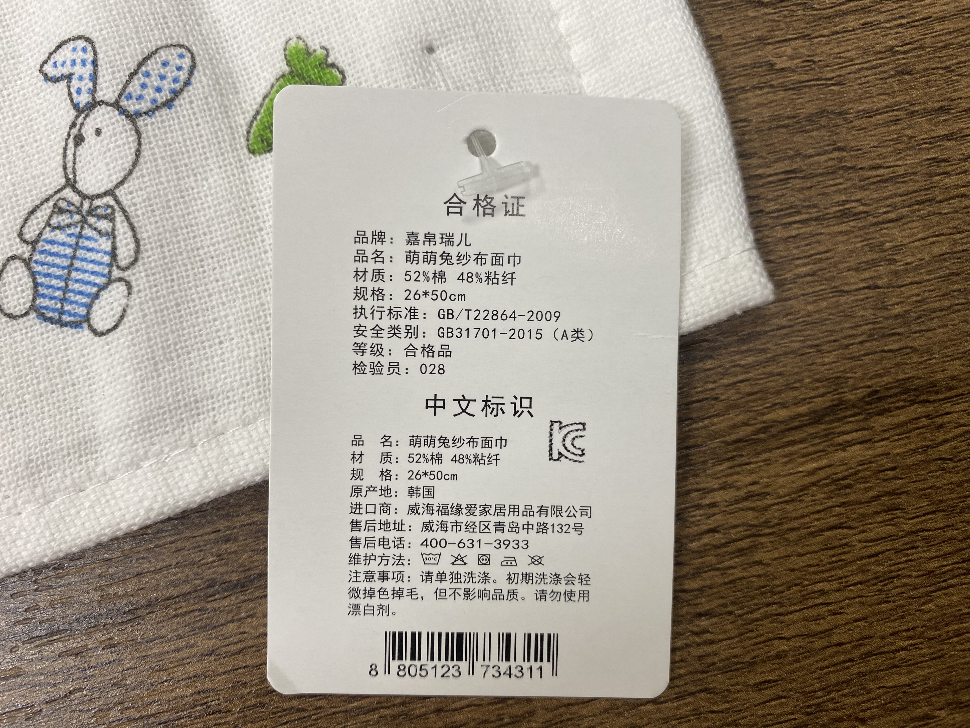 【10元会员福利】嘉帛瑞儿纱布面巾(26*50cm)