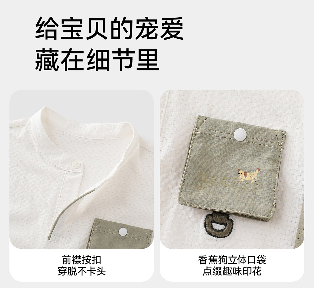 英氏婴儿衣服夏季透气速干月亮裆哈衣男宝短袖连体衣YRHBJ2R017A
