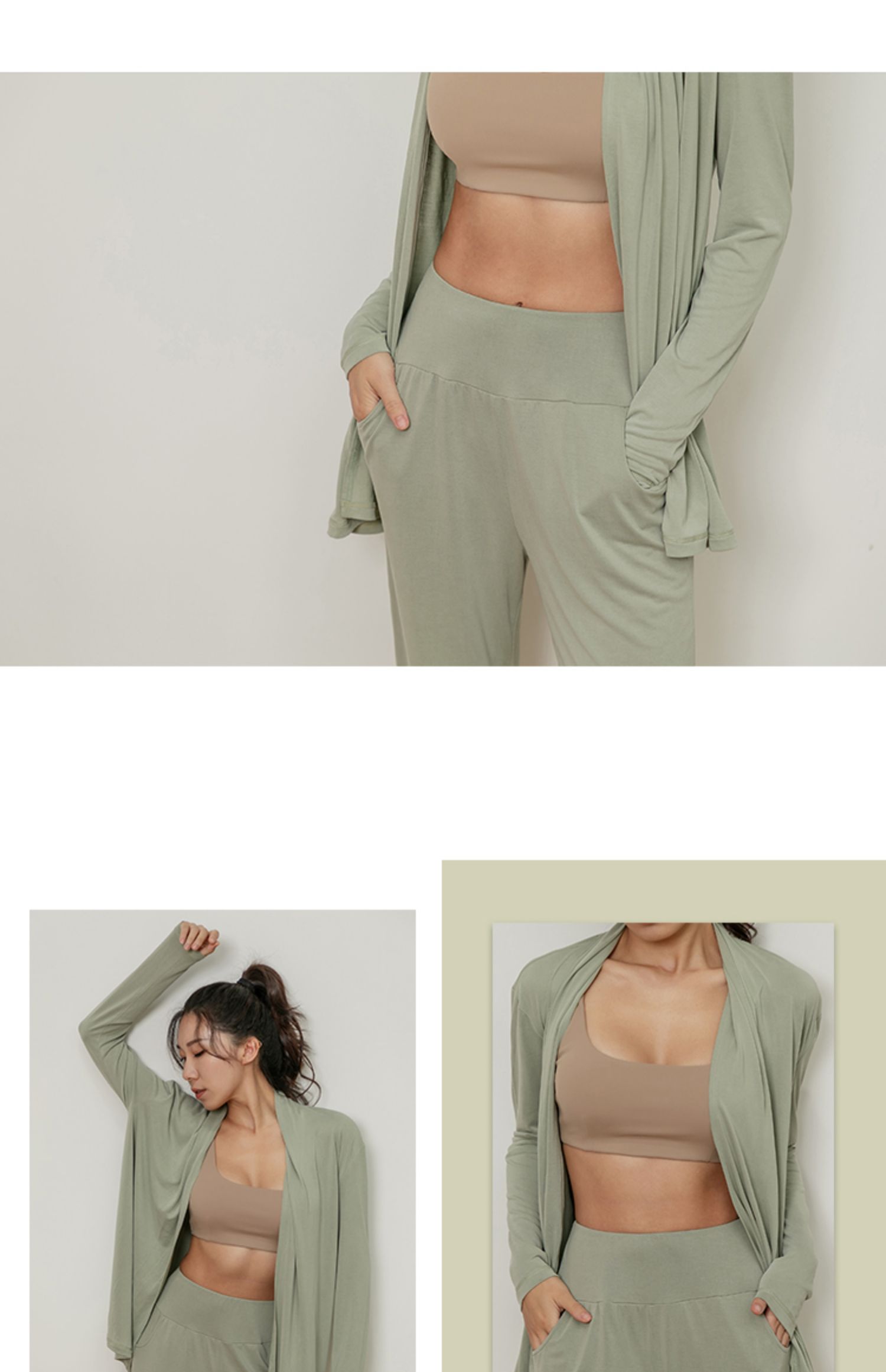 【凉感镂空】后背抽绳露腰长袖上衣--不带胸垫