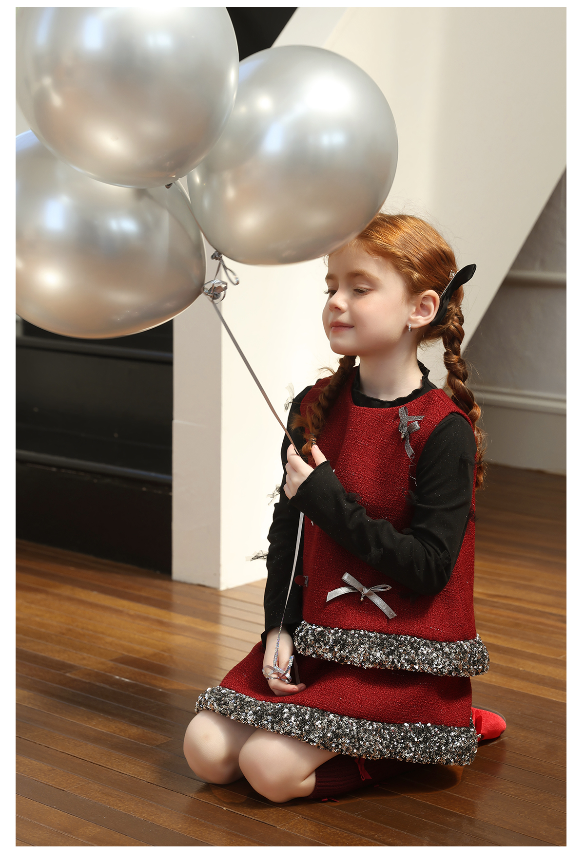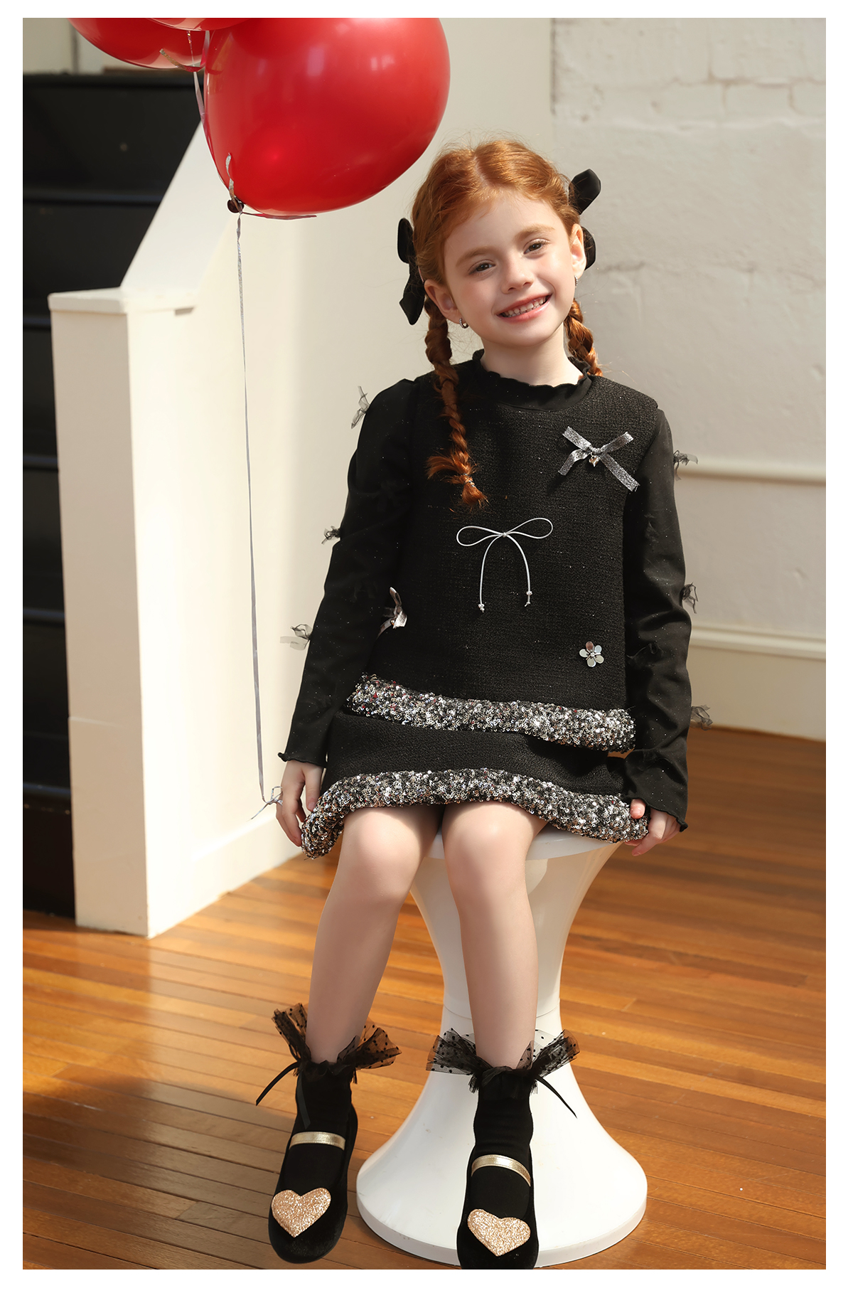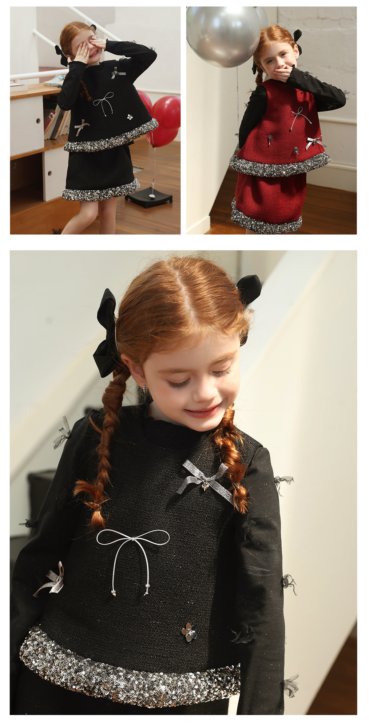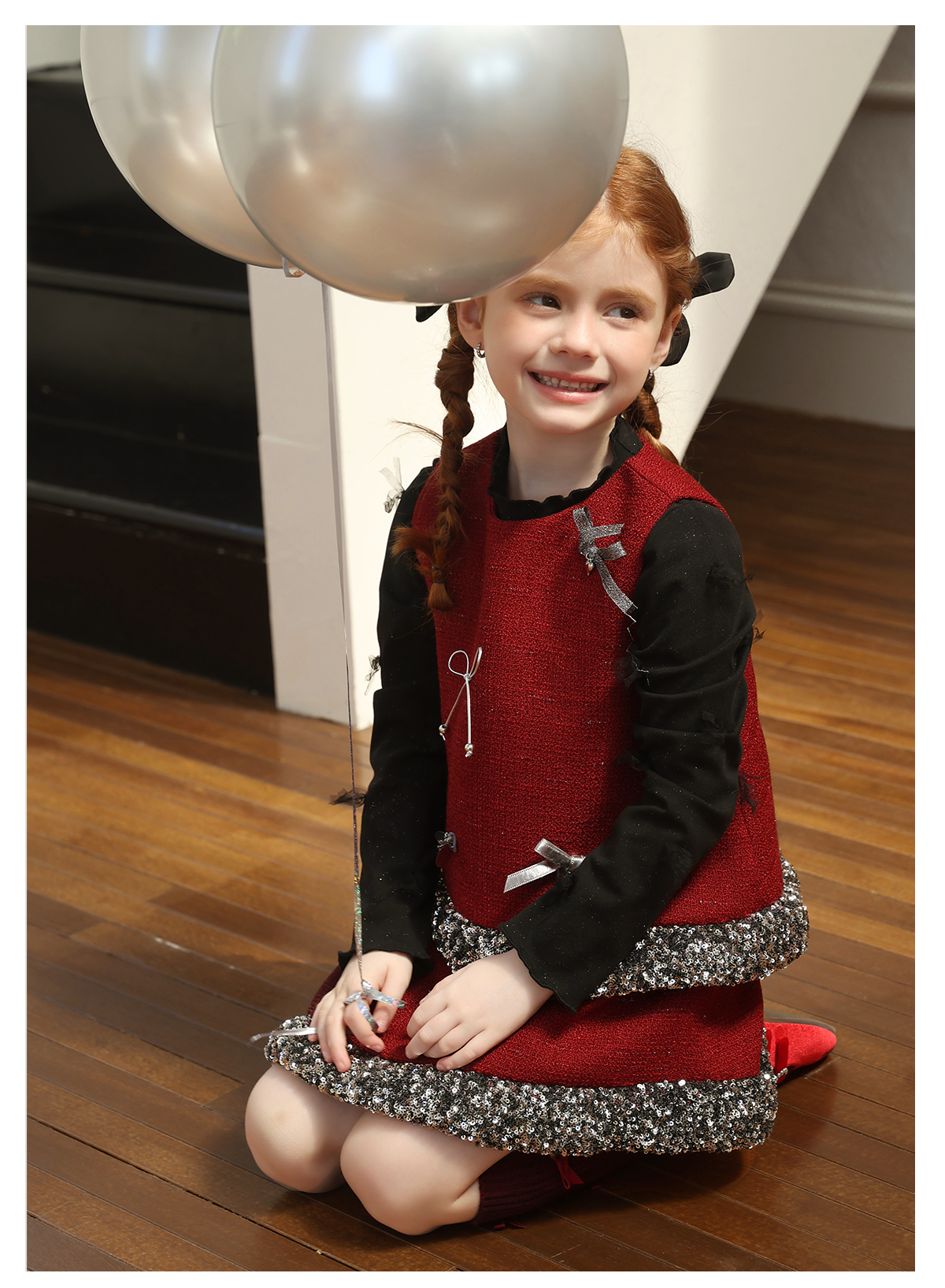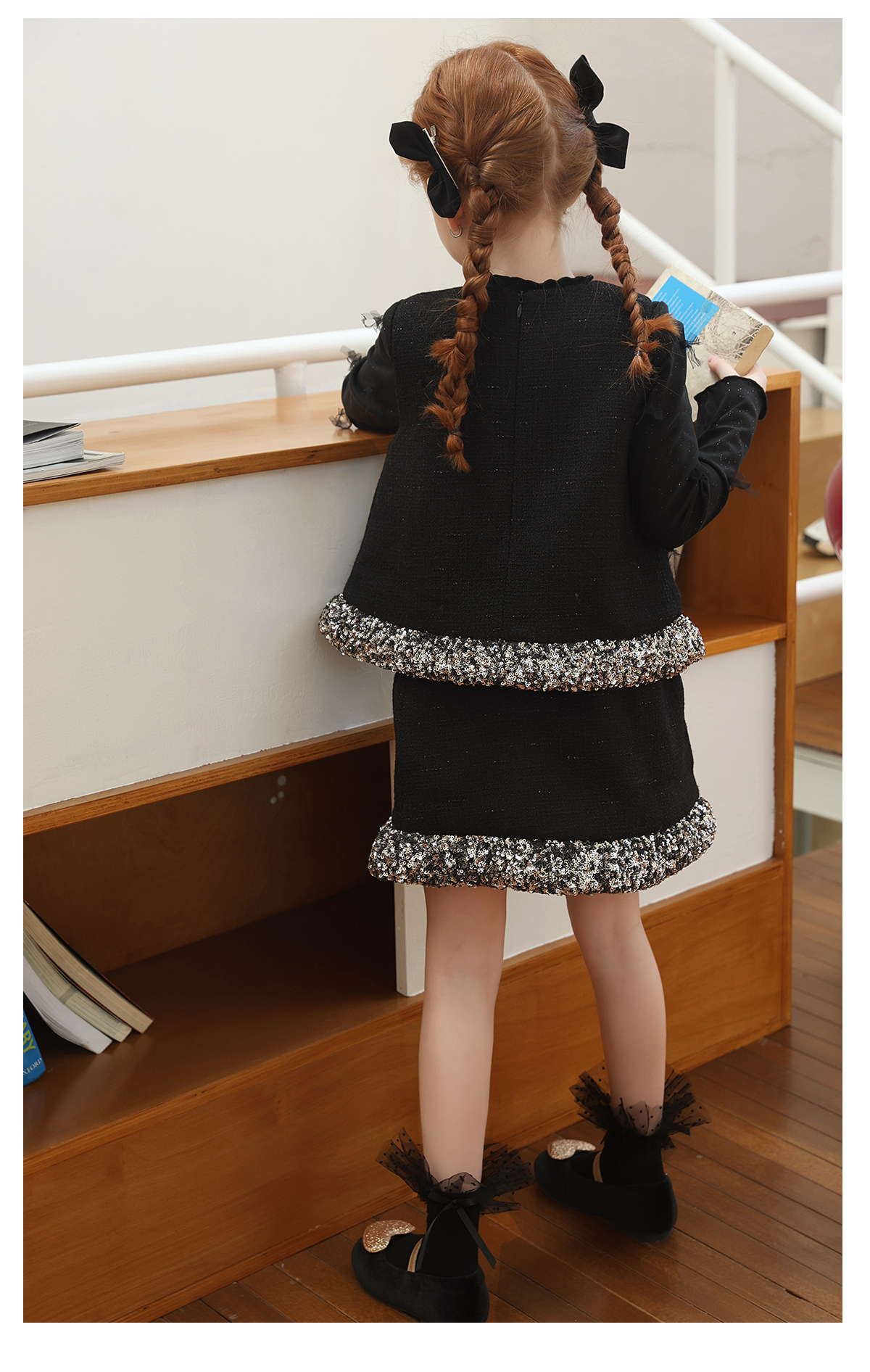littletime女童套装2025学院风亮片领口针织开衫红色新年套装