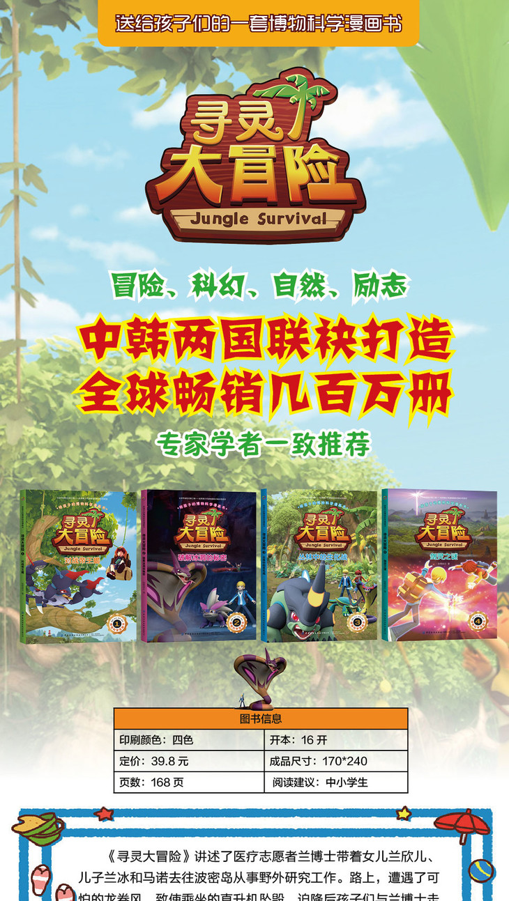 全4册套装 2020新书 给孩子的博物科学漫画书 寻灵大冒险 博物科学漫画书 植物百科全书 大自然科学现象植物动物科普知识书籍