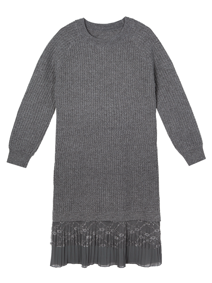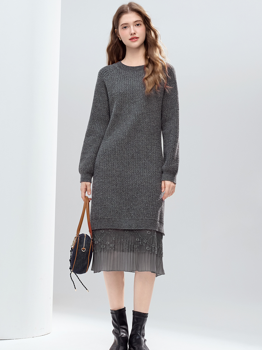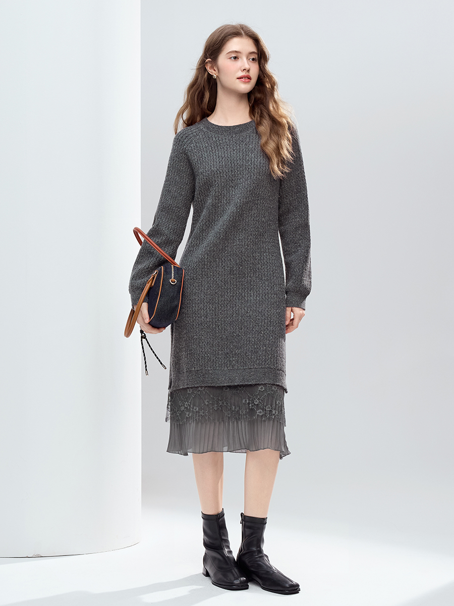 【百图lulu定制】【蕾丝连衣裙】 设计感蕾丝拼接毛衣连衣裙女2025年冬季新款显瘦直筒裙