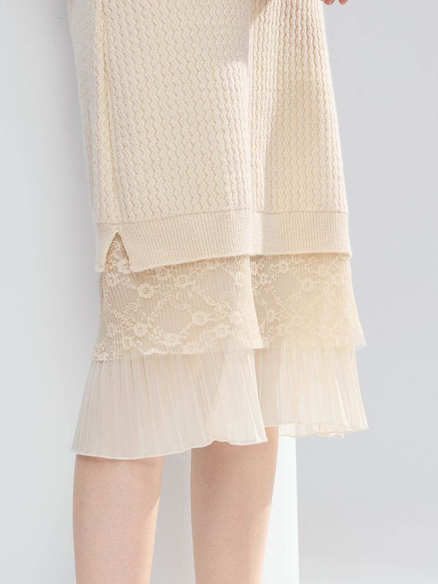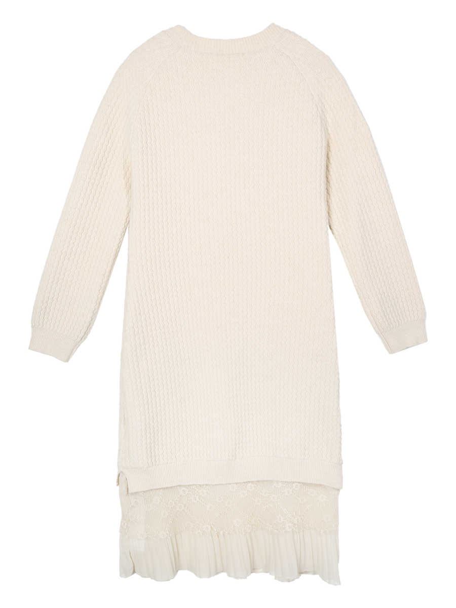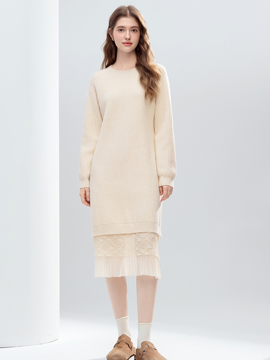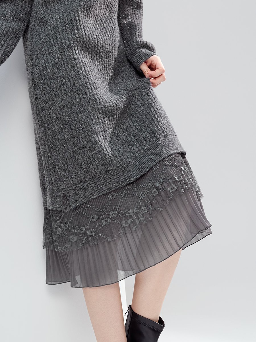 【百图lulu定制】【蕾丝连衣裙】 设计感蕾丝拼接毛衣连衣裙女2025年冬季新款显瘦直筒裙
