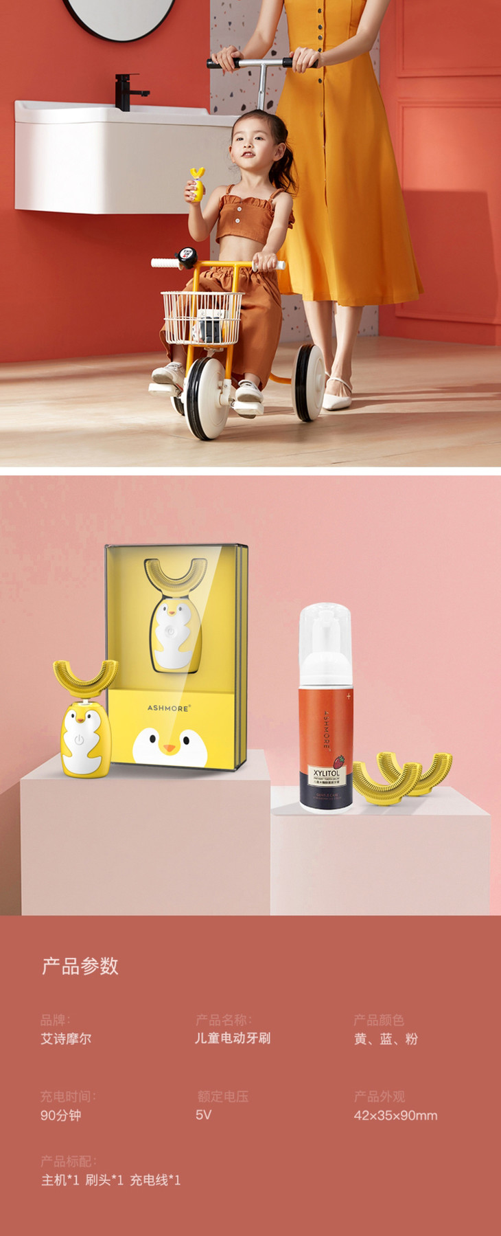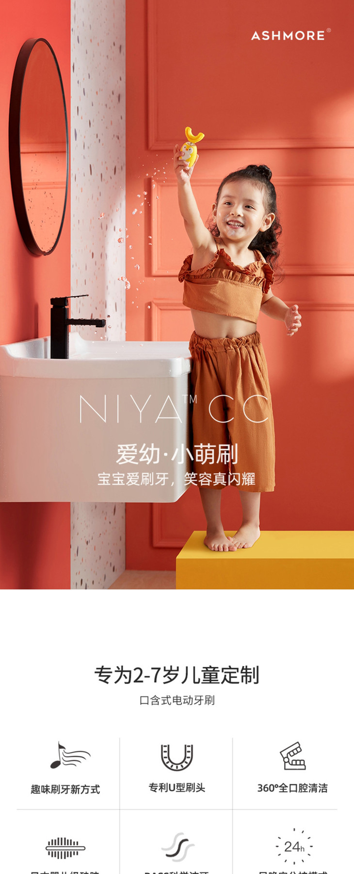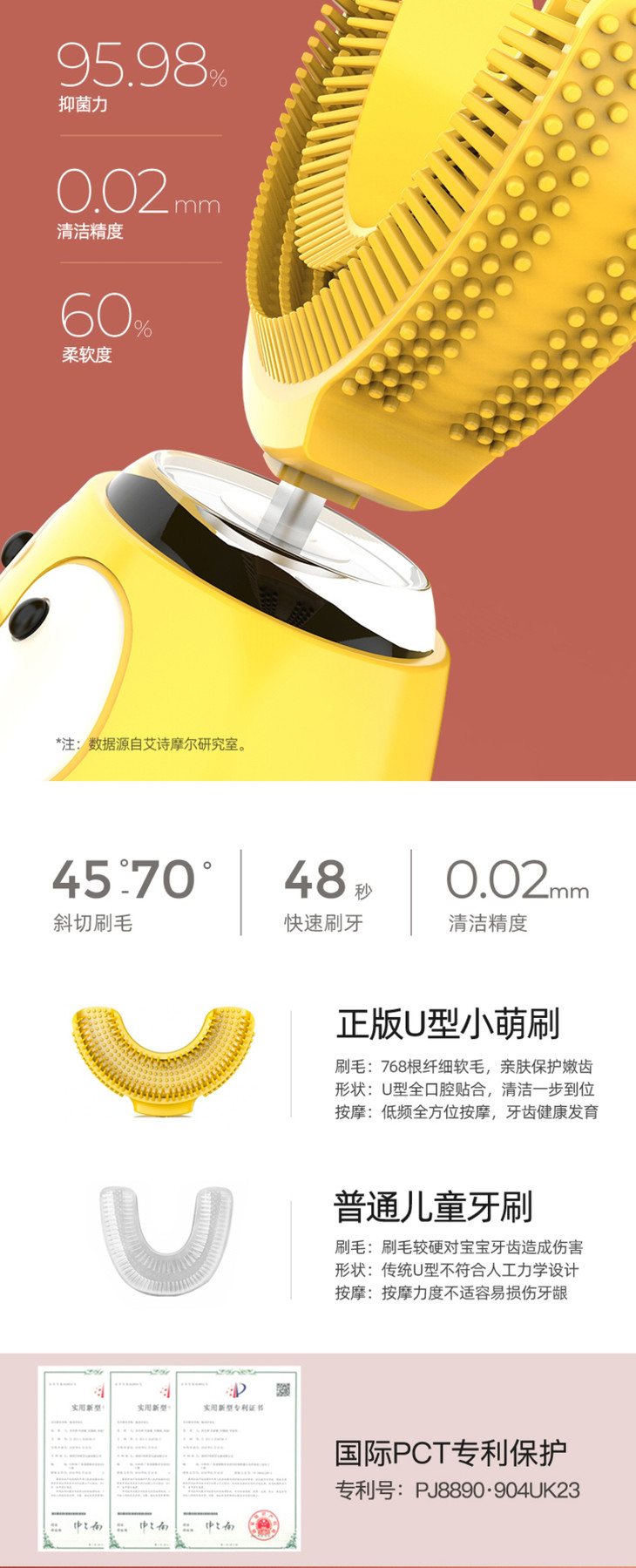 艾诗摩尔全自动宝宝儿童电动u型牙刷u形口含式充电声波式刷牙神器