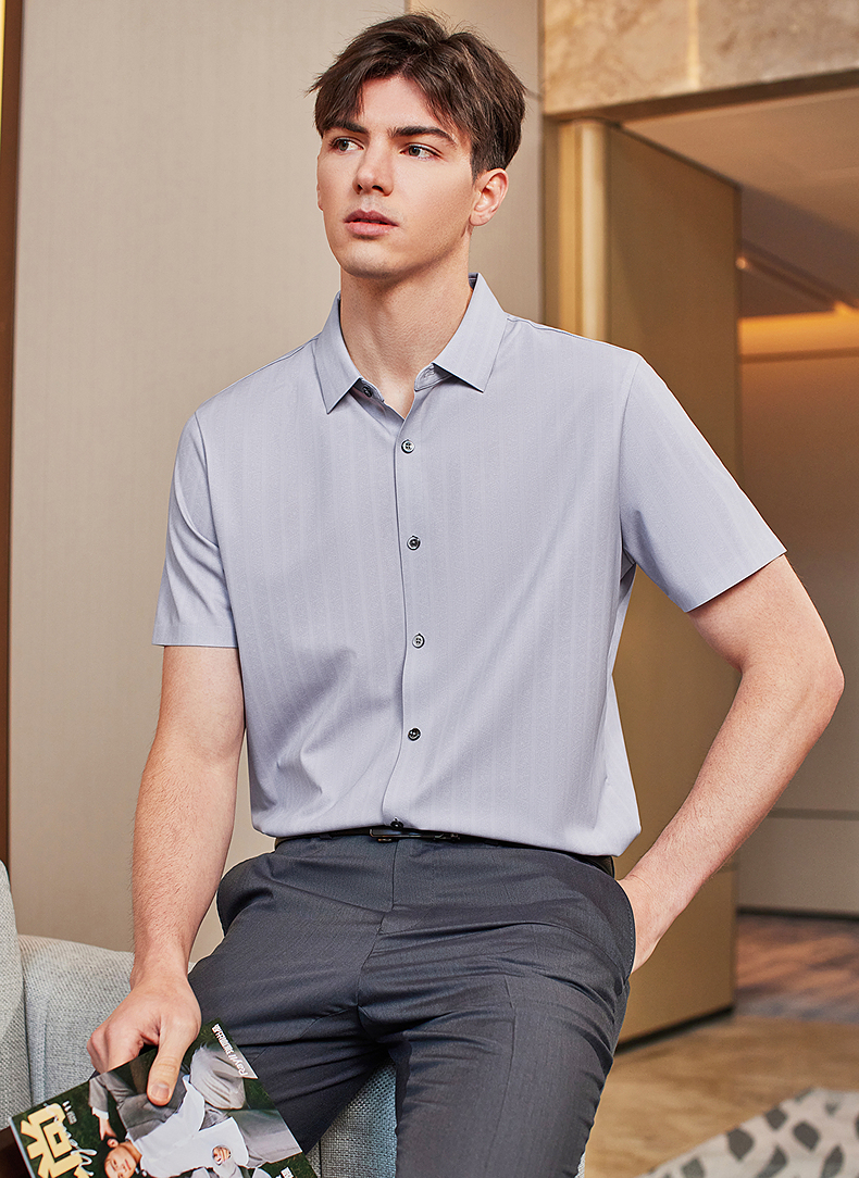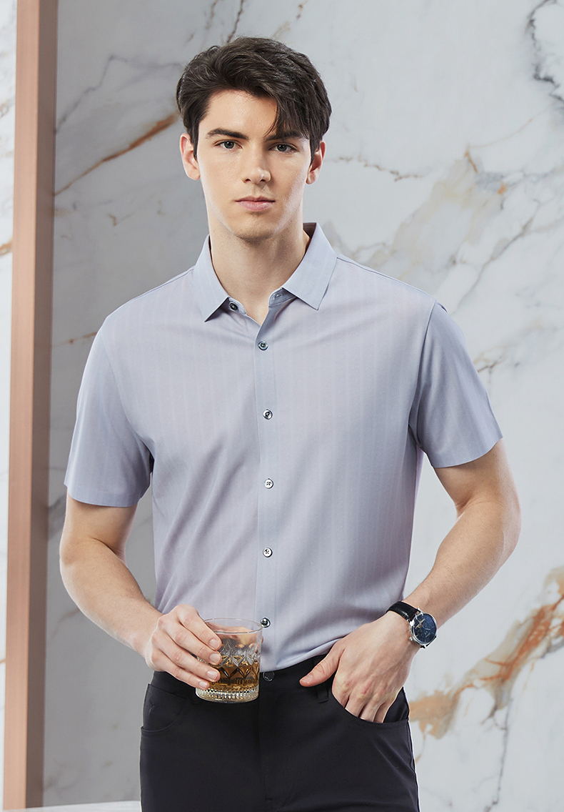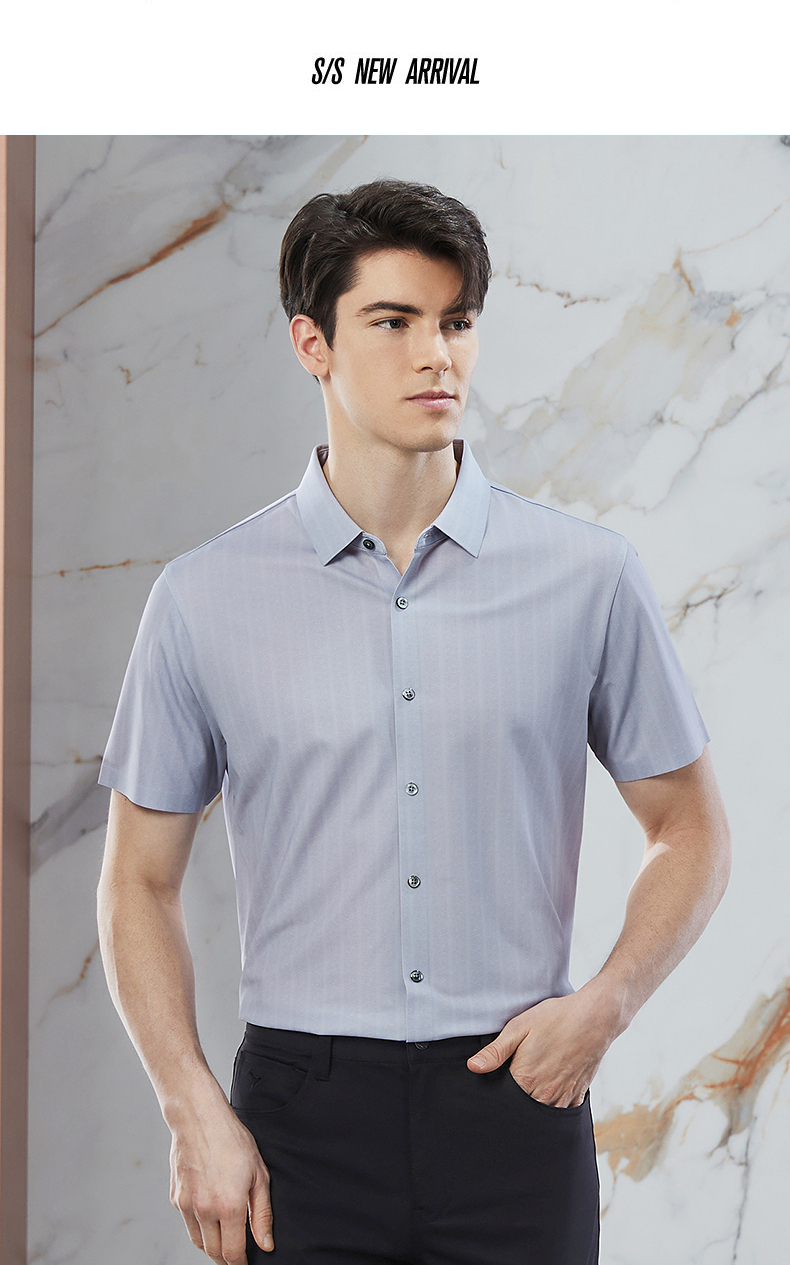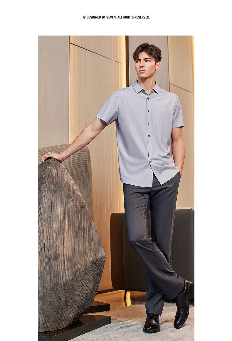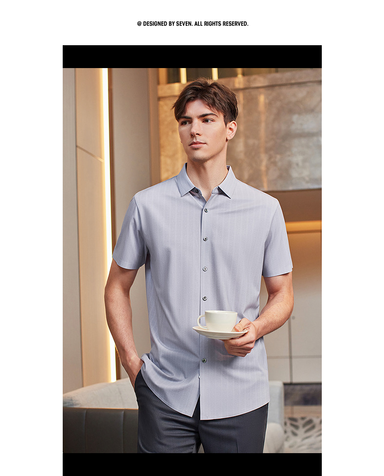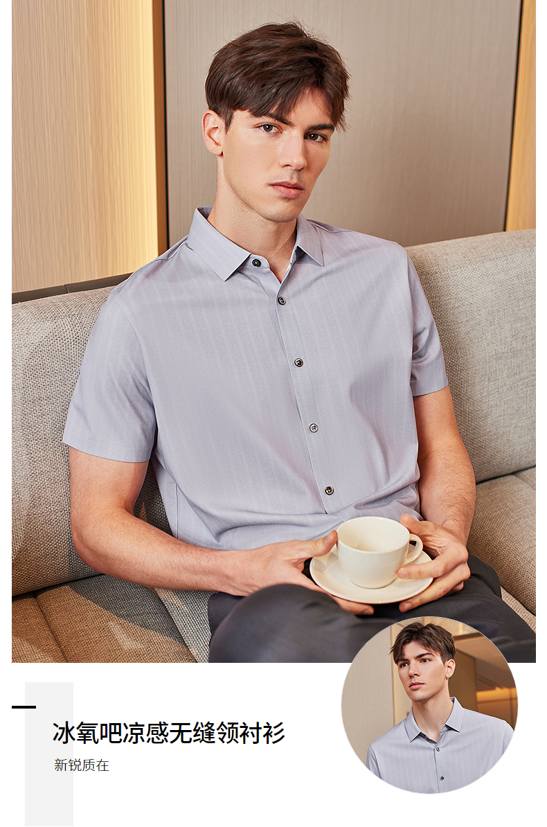 【冰氧吧】柒牌凉感短袖衬衫男2024夏季新款条纹印花休闲翻领衬衣 126A71280