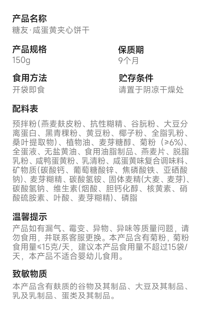 糖友厨房 夹心饼干(酸奶/咸蛋黄)150g 多规格组合
