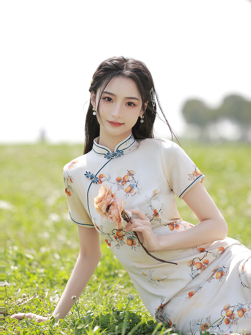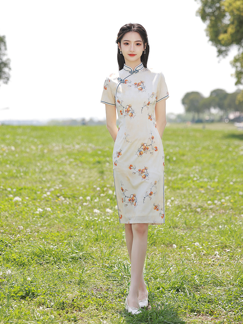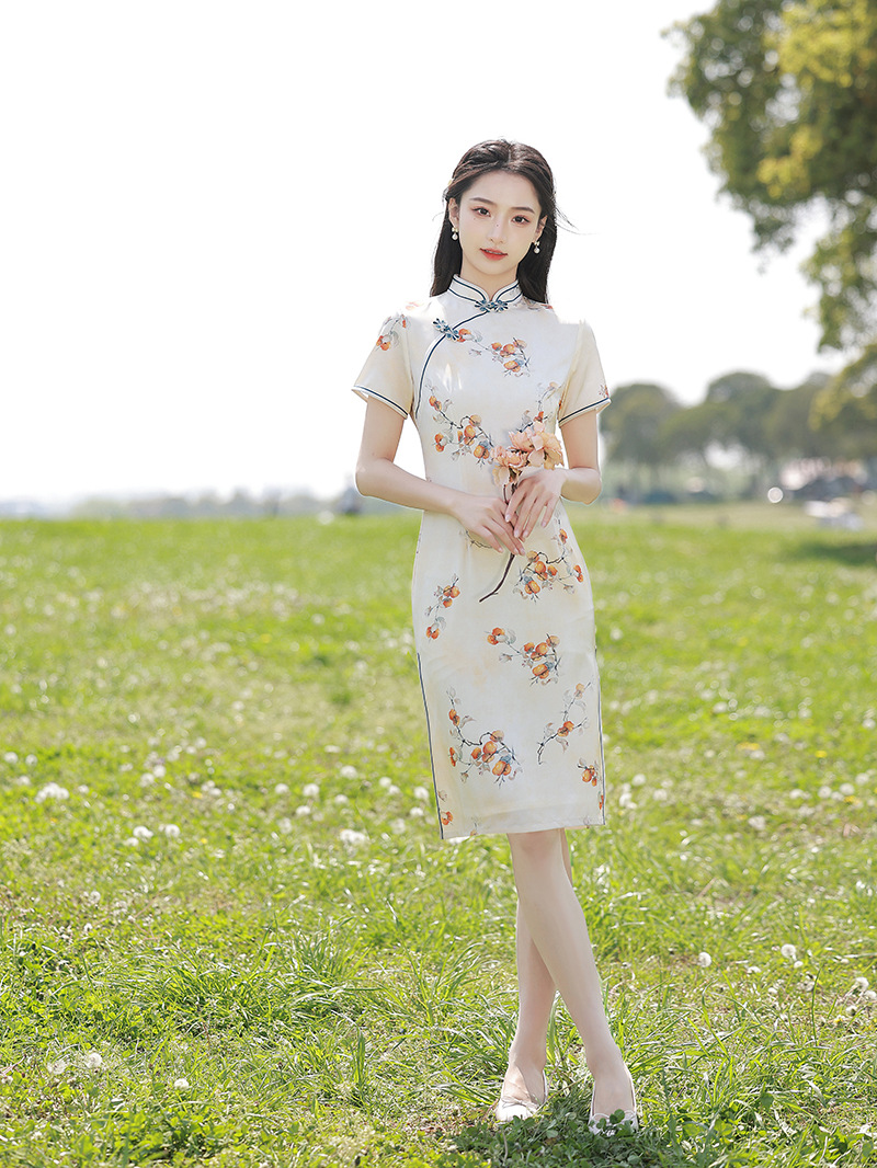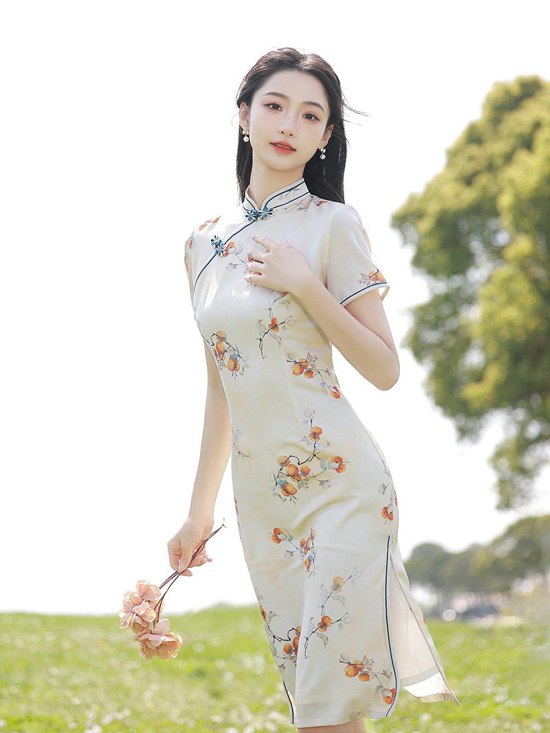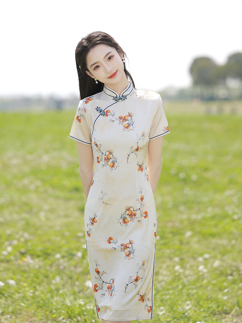 复古中长款修身,休闲日常旗袍XL-23159
