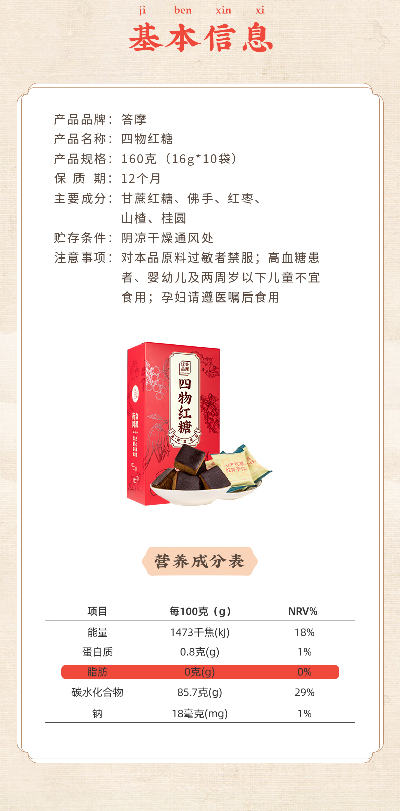 【积分兑换】含有佛手山楂红枣桂圆滋养食材的四物红糖 (简装版)160g