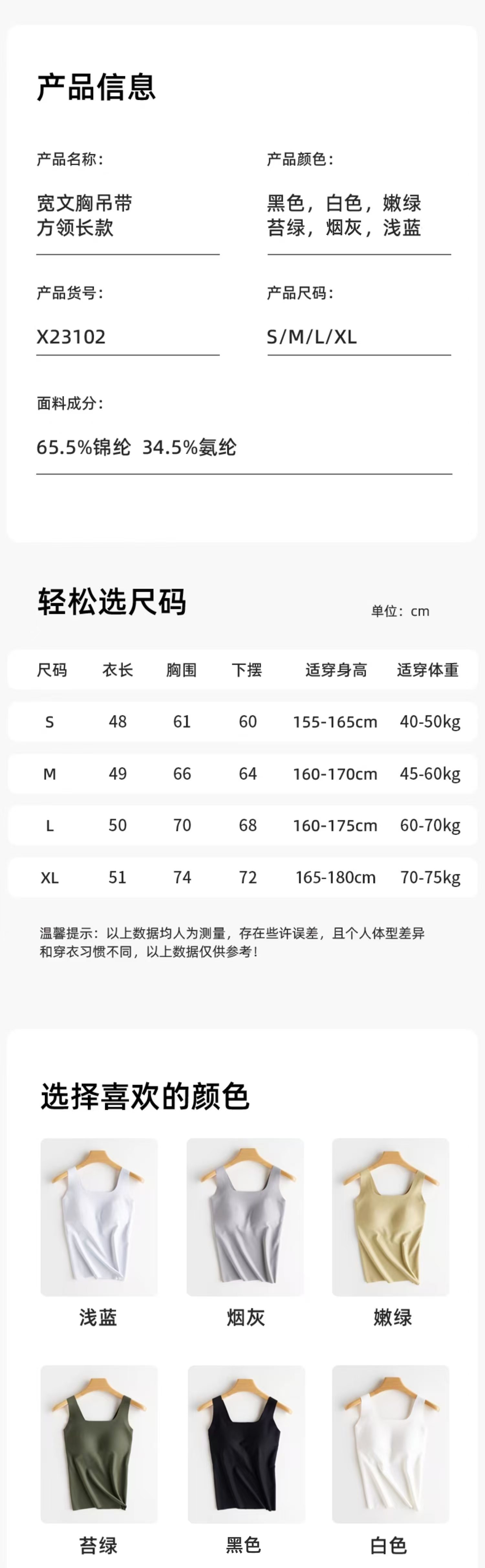 Mylyis 女款宽吊带方领长款美背X23102/男款兰精莫代尔无痕圆领背心2711 合集