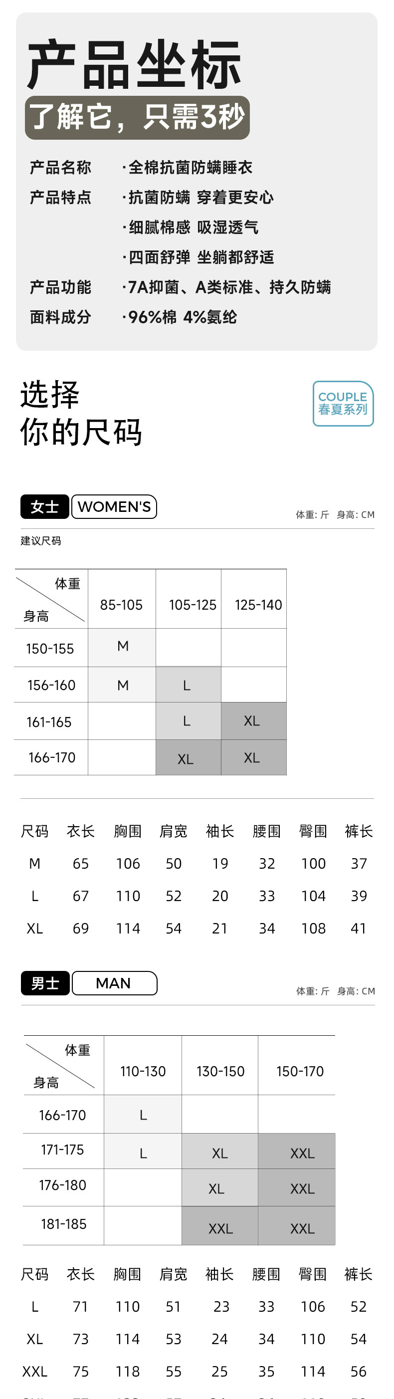 全棉抗菌防螨睡衣(MISS)