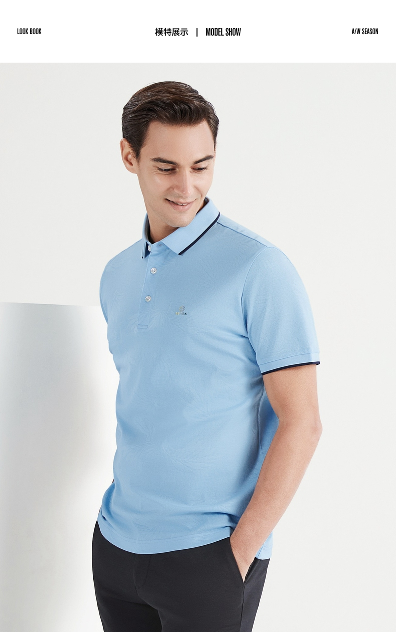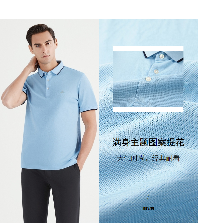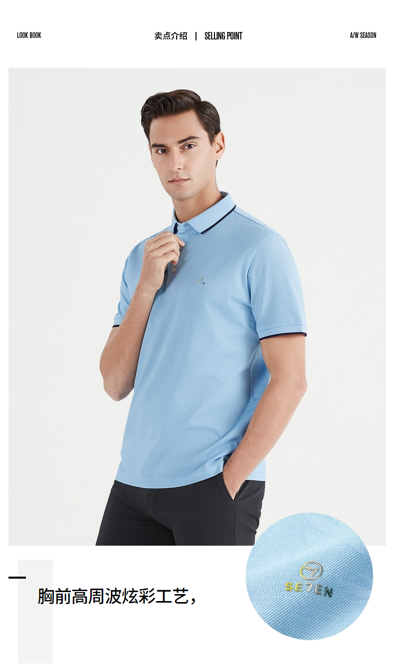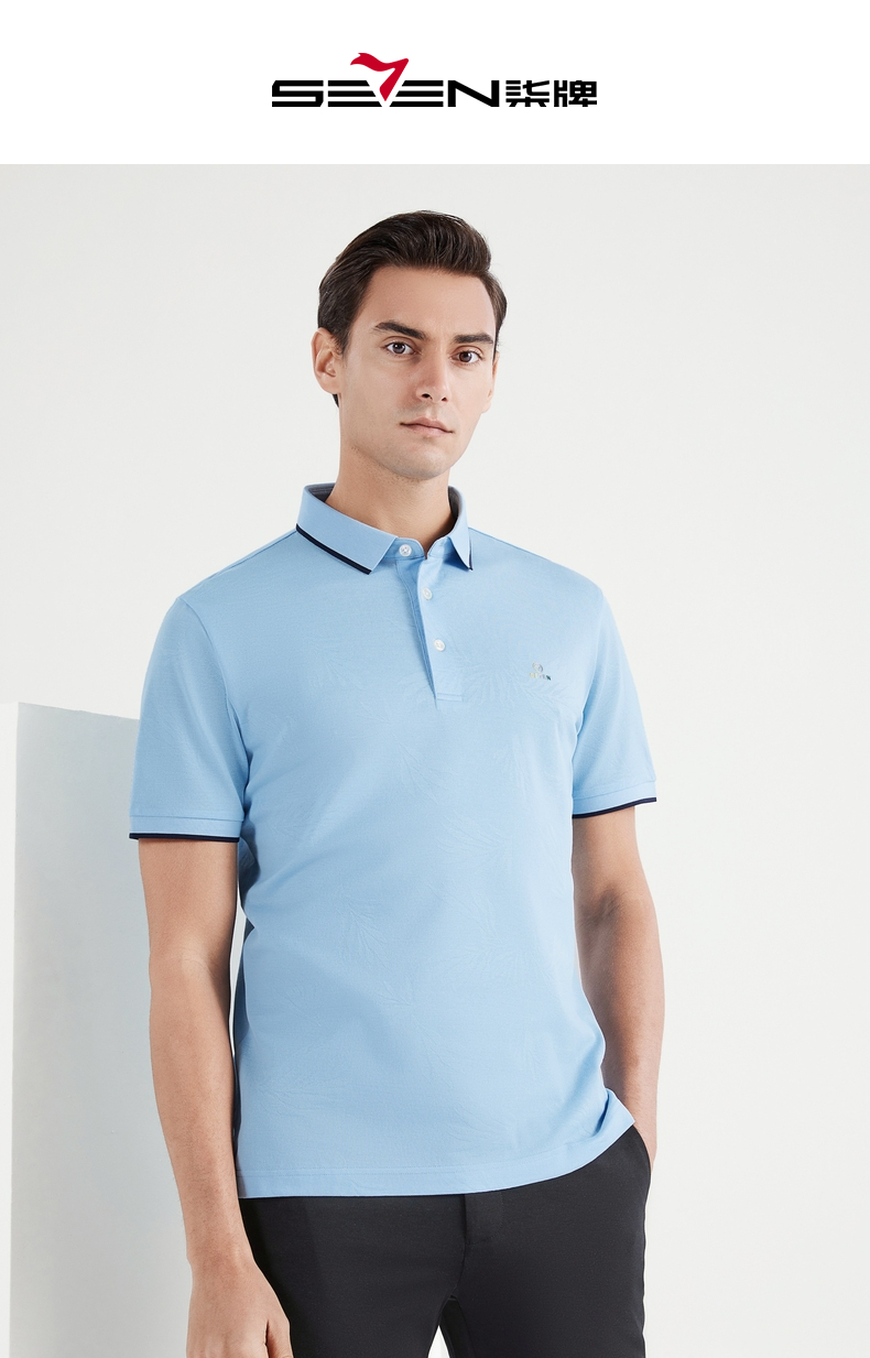【特价丝光棉】柒牌polo衫男短袖休闲商务满身提花翻领上衣122T72050