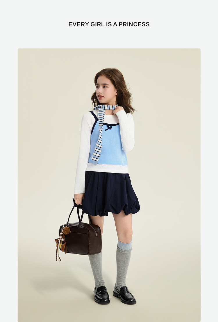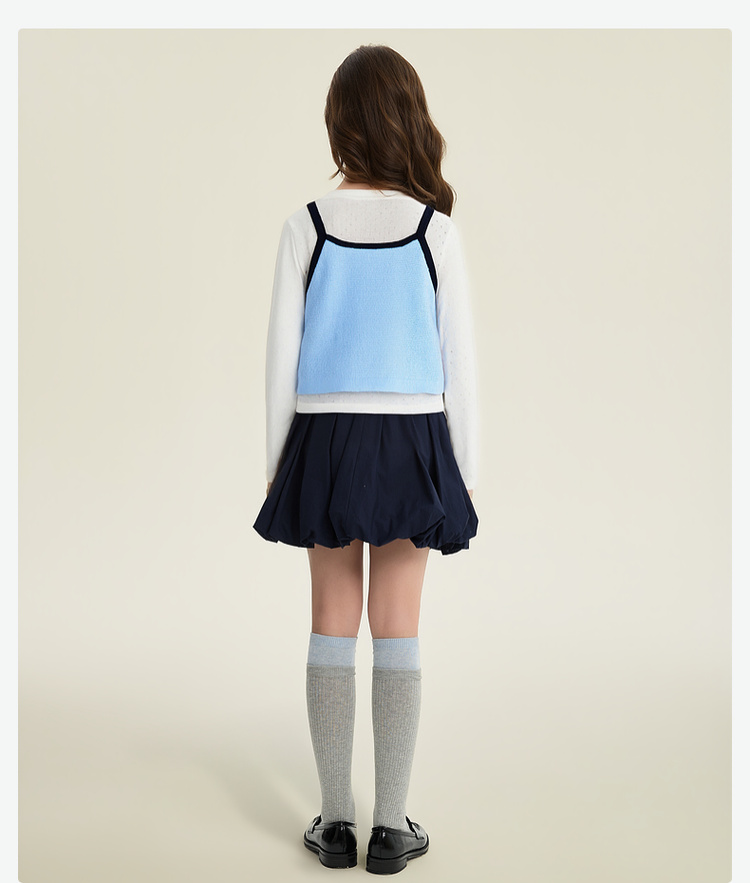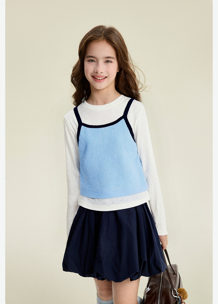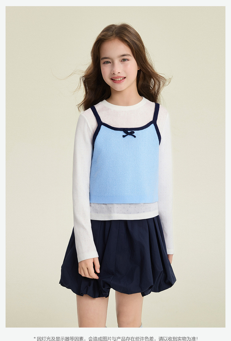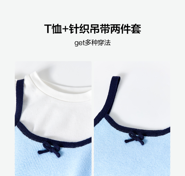 笛莎Deesha 童装女童套装2026春新款T恤针织吊带两件套套装