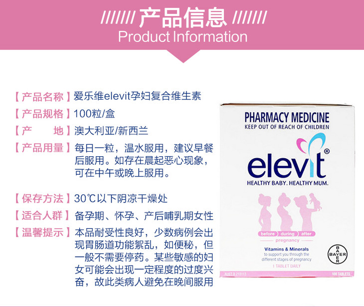 【现货】澳洲 Elevit爱乐维女备孕孕期维生养素孕妇女性叶酸