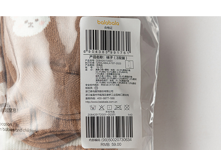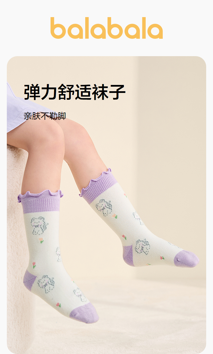 巴拉巴拉balaOne儿童袜子秋冬女童甜美袜提花中大童含羊毛三双装